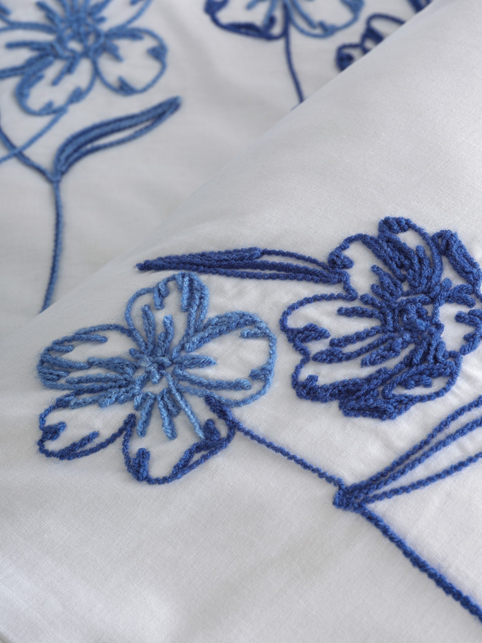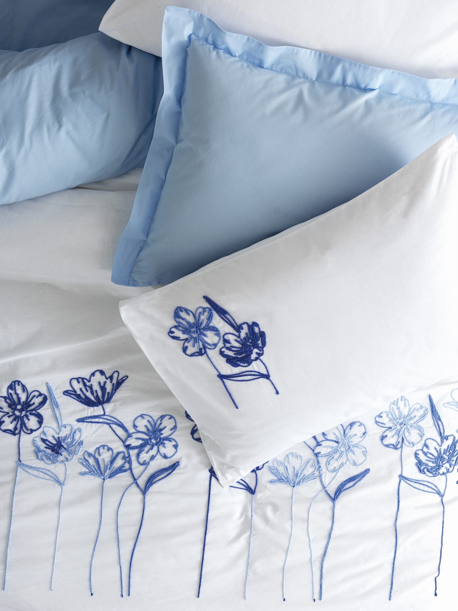 Nakışlı Ranforce Çift Kişilik Nevresim Takımı Onella Mavi