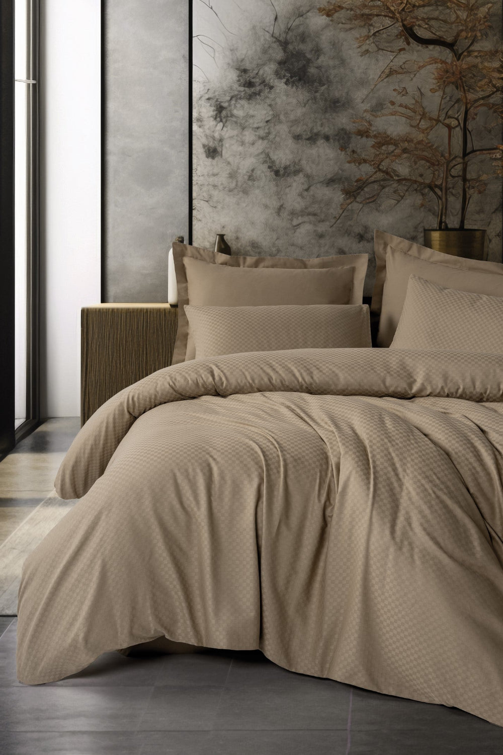 Plaid Ranforce Çift Kişilik Nevresim Takımı Vizon