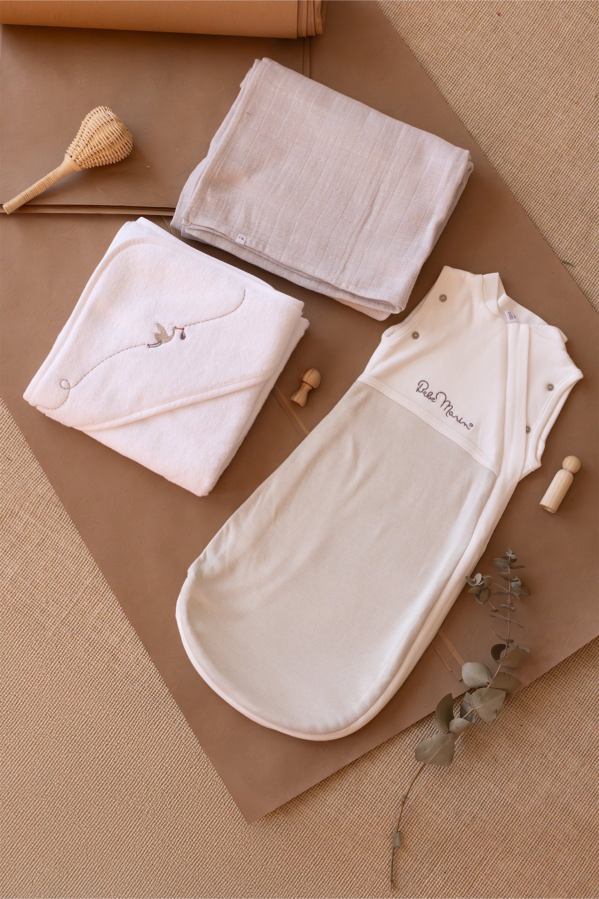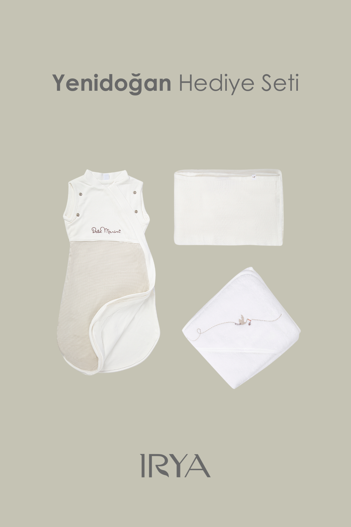 Bebemarin 3'lü Organik Yenidoğan Hediye Seti Krem | Battaniye, Tulum, Kundak