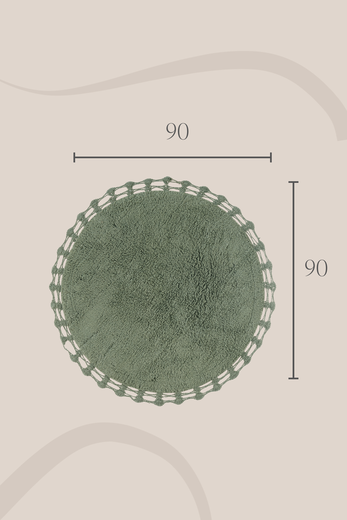 Luna Yuvarlak Banyo Paspası %100 Pamuk 90x90 Haki
