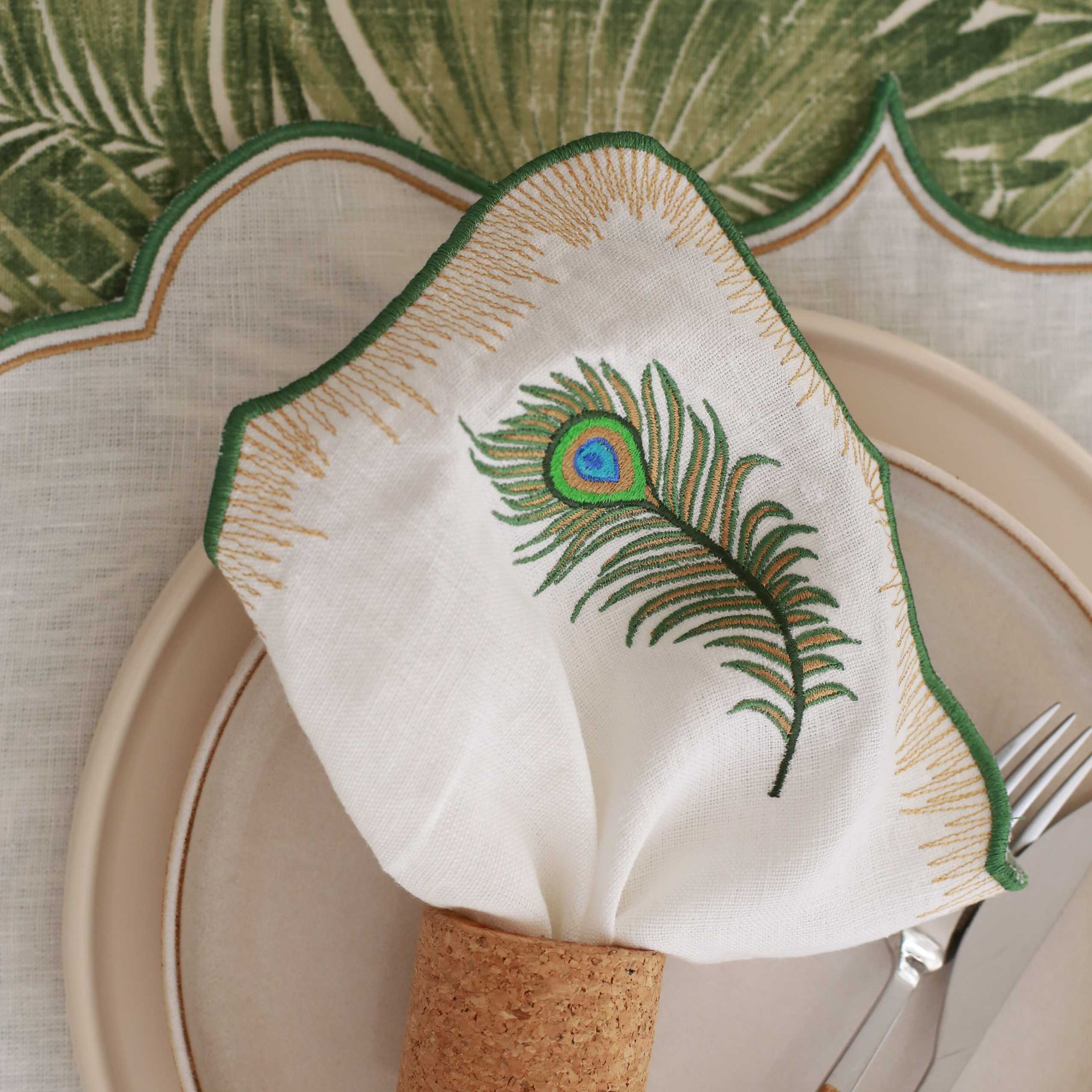 2'li Set Yeşil Yaprak İŞlemeli Keten Peçete