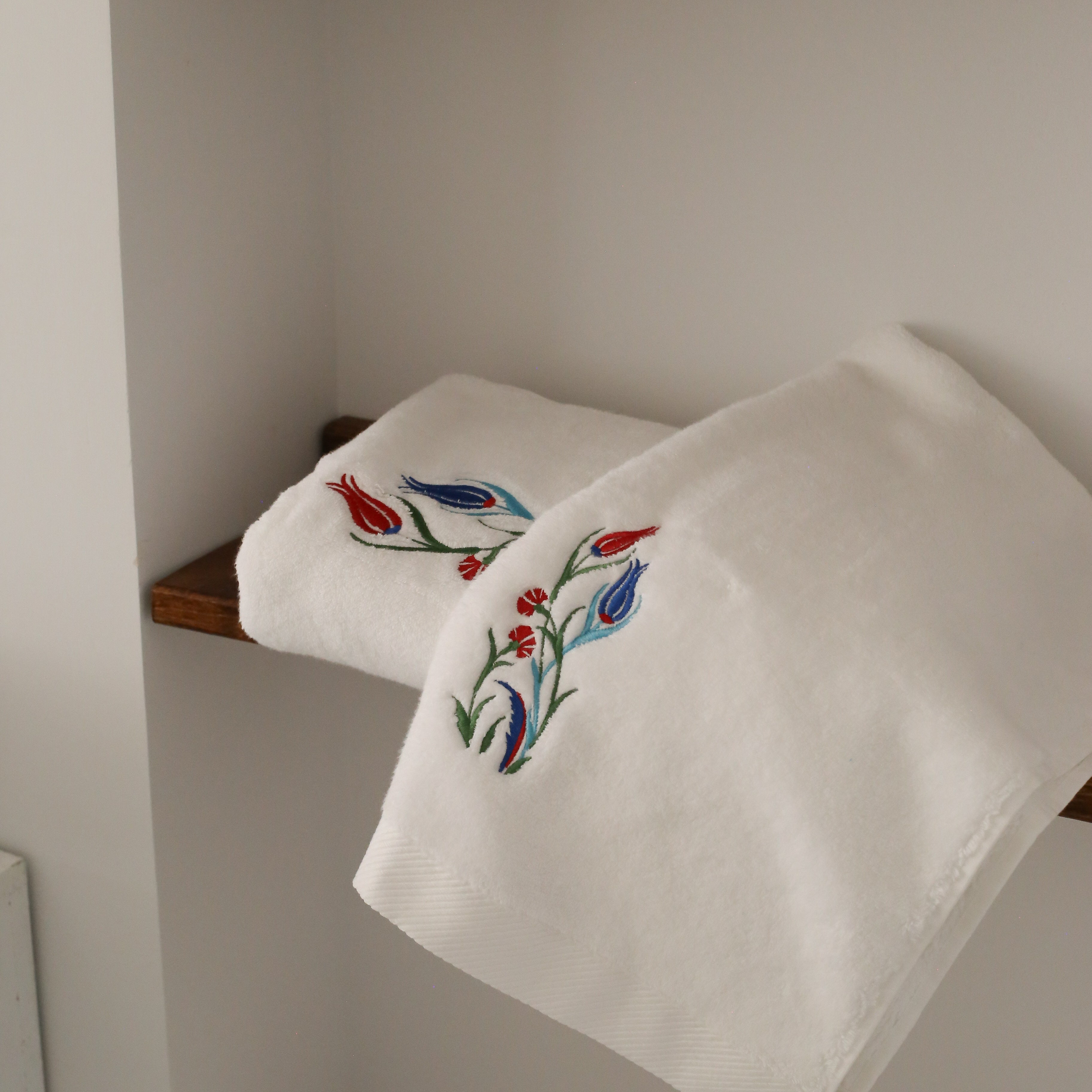 Lale İŞlemeli Pamuk Yüz Havlusu