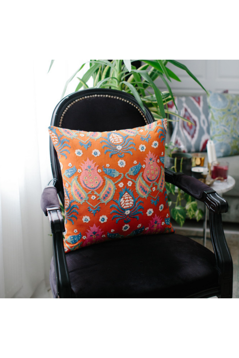 • Suzani yastık kılıflarının arka kısmı pamuklu kumaştan imal edilmiştir ve gizli fermuarlıdır.