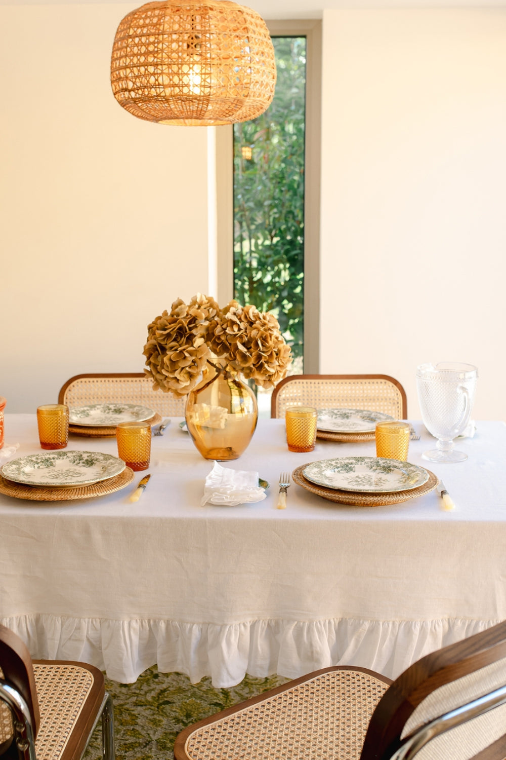 Keten ve pamuk karışımından üretilen beyaz masa örtümüz, zarif fırfır detayıyla sofralarınıza sofistike bir dokunuş katıyor. Pamuk yumuşaklığı ile ketenin dayanıklılığını bir araya getiren bu örtü, konfor ve şıklığı dengeli şekilde sunar. En çok tercih edilen modellerimizden biri olan bu ürün, sade ama etkileyici tasarımıyla öne çıkıyor.