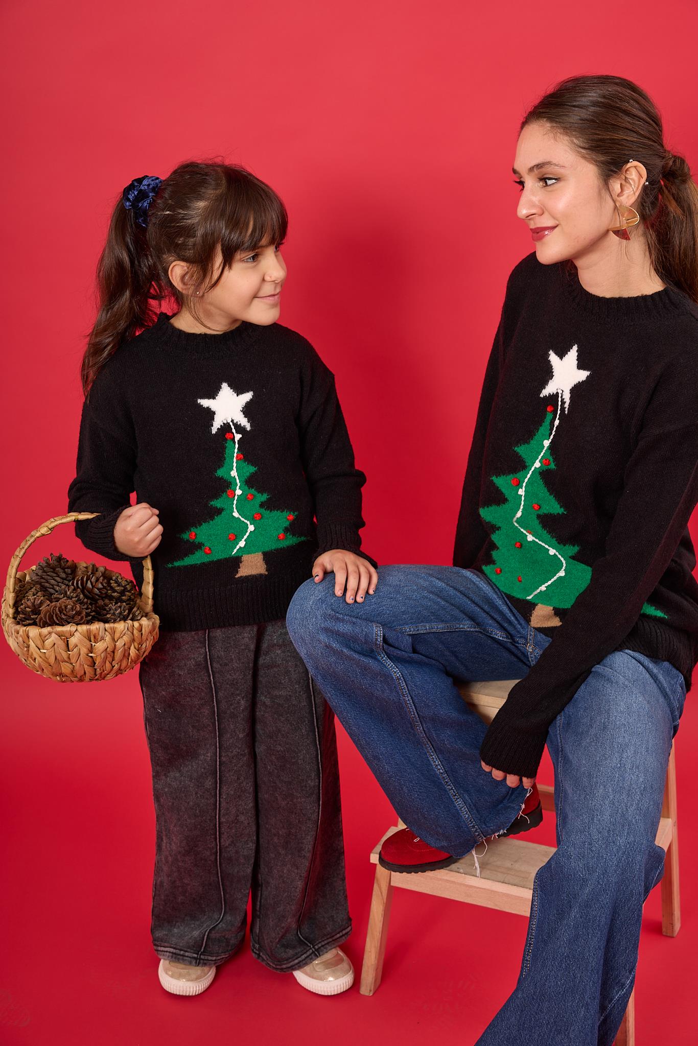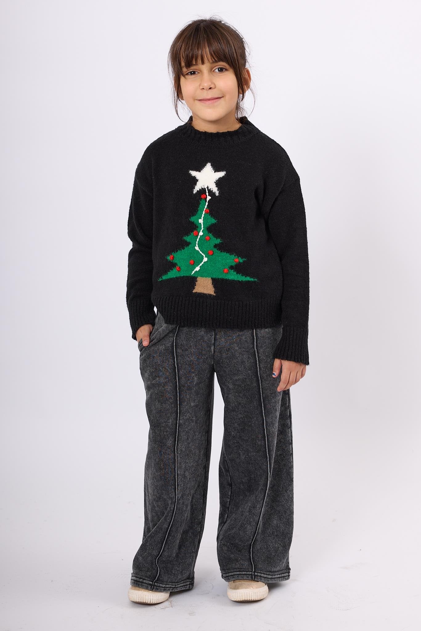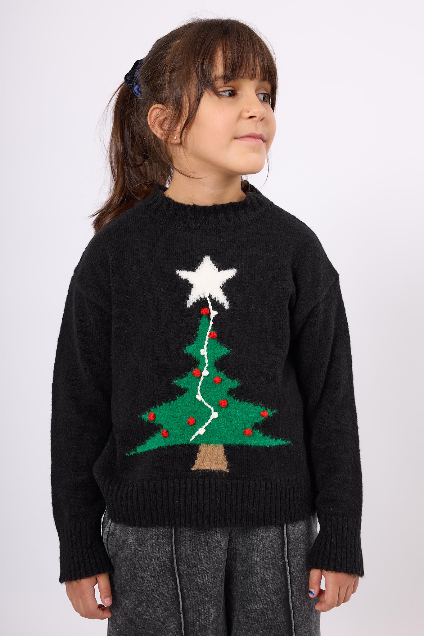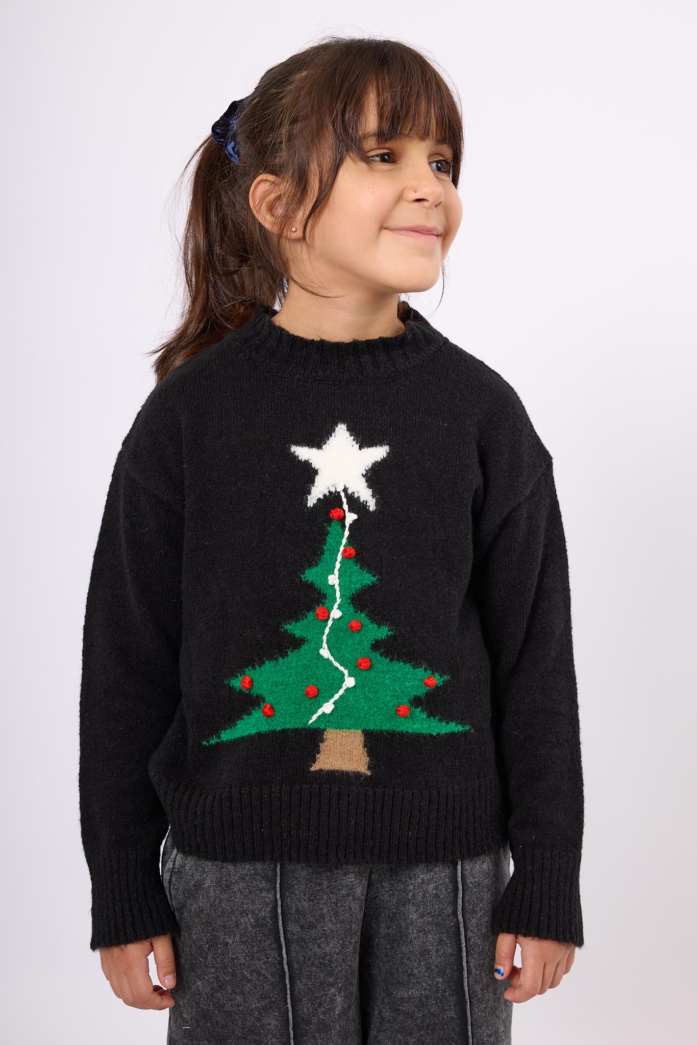 Happy Times Çam Ağacı Desenli Çocuk Yılbaşı Kazağı Siyah/Yeşil