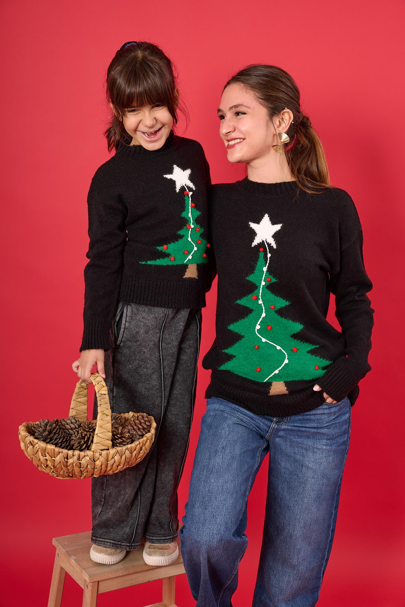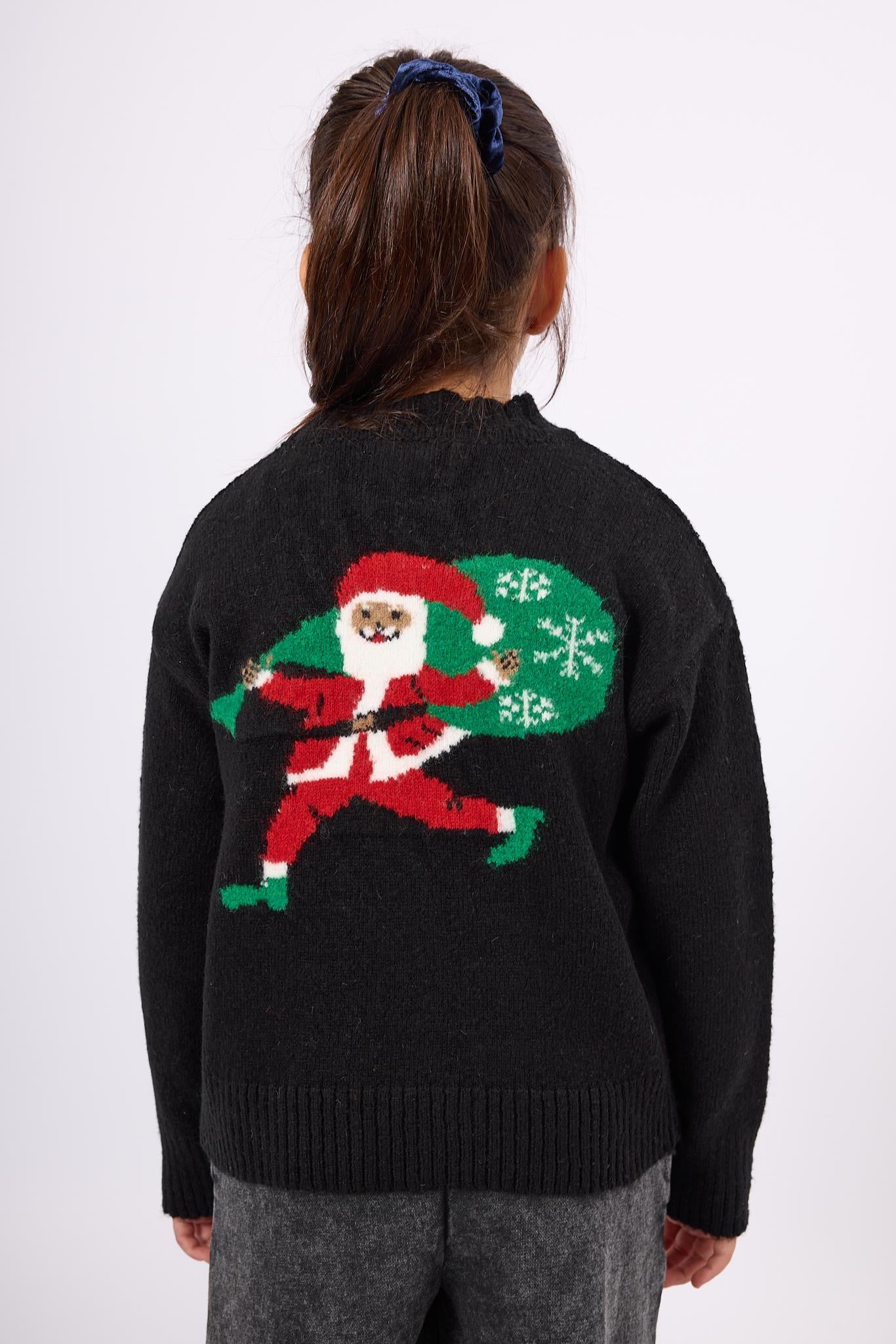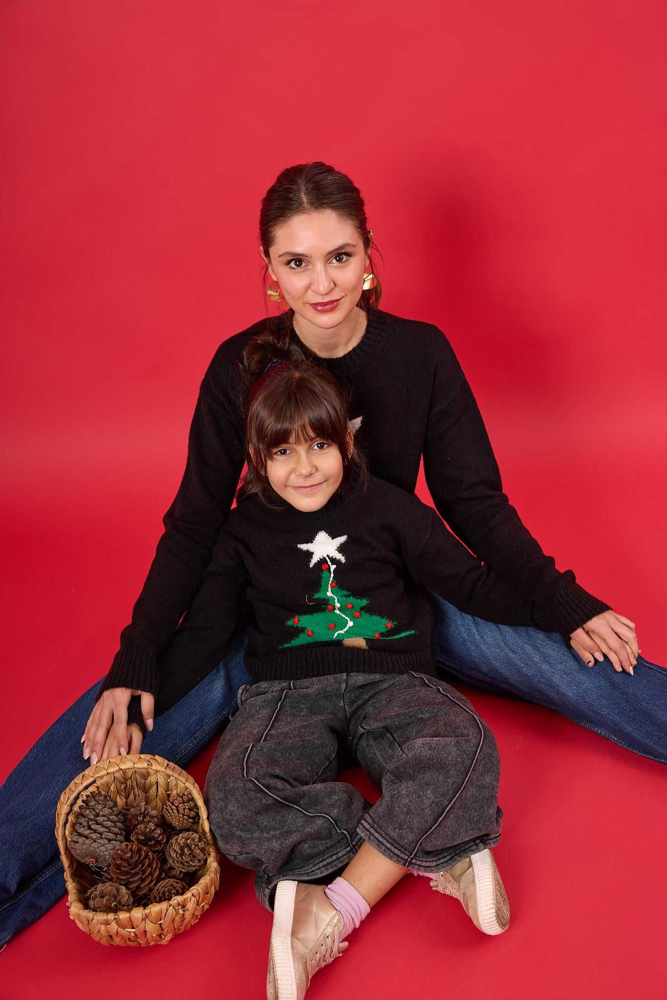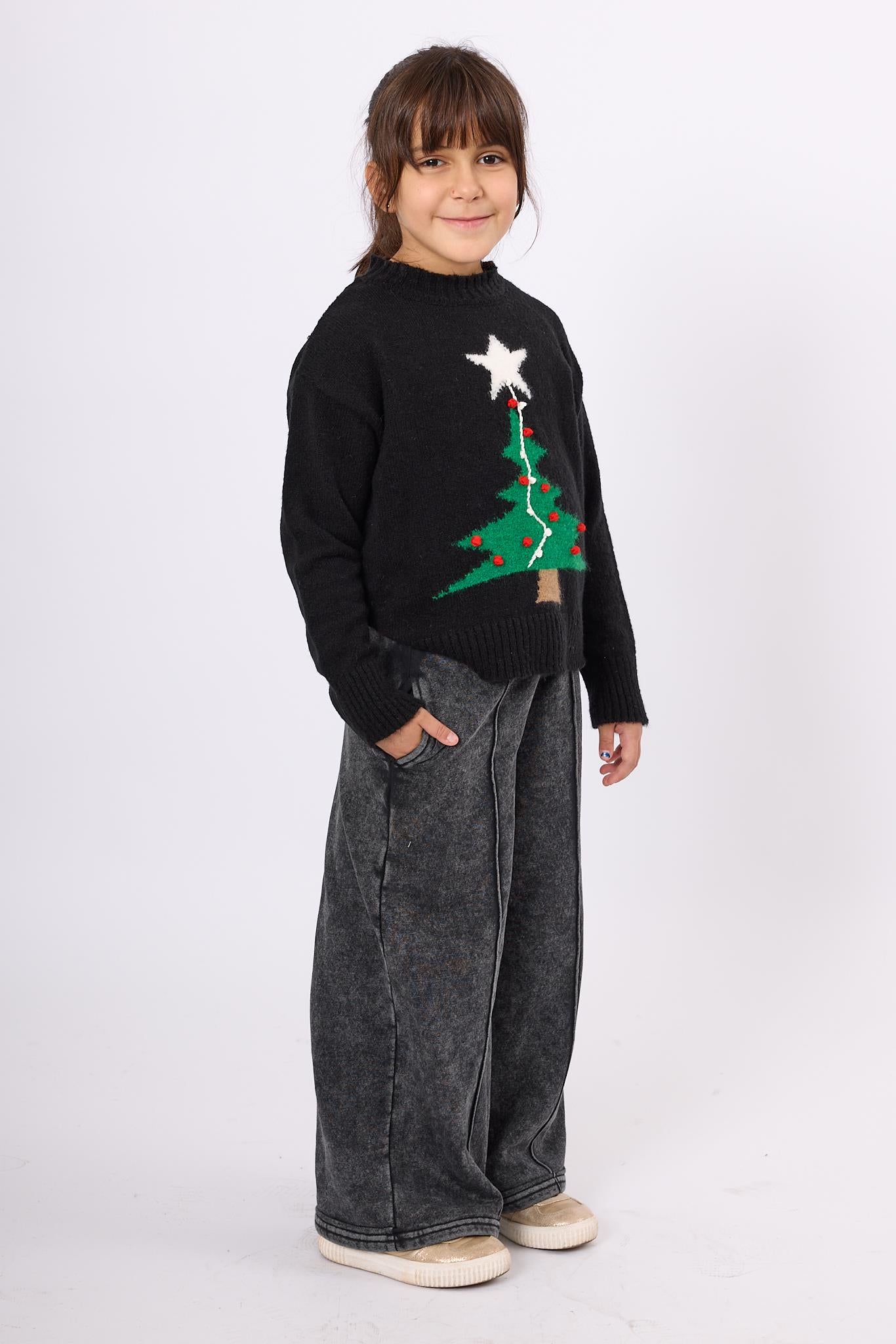 Happy Times Çam Ağacı Desenli Çocuk Yılbaşı Kazağı Siyah/Yeşil
