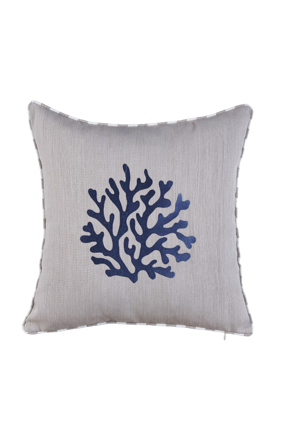 Ocean Serisi Lacivert & Keten Mercan Desenli Keten Kırlent