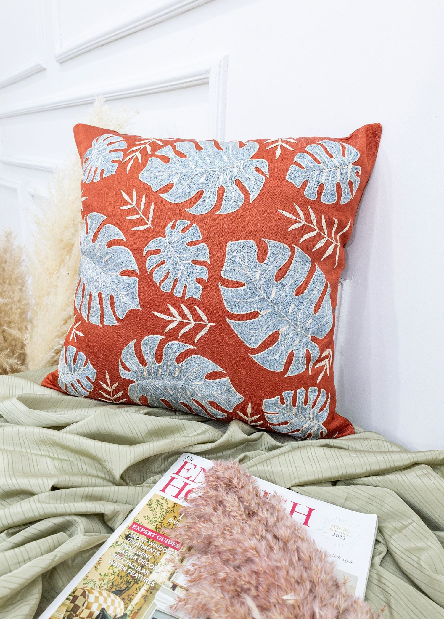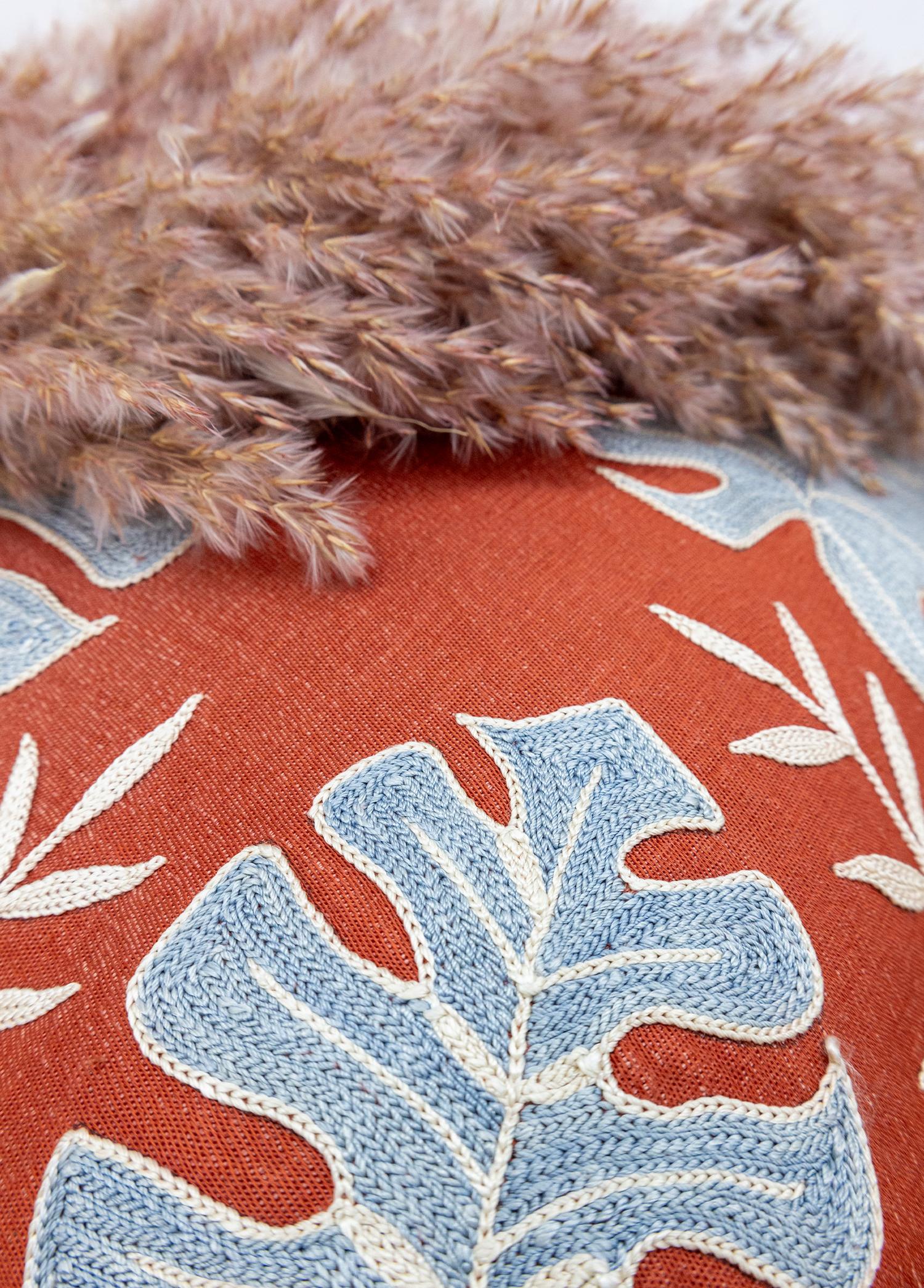 Esil Yaprak Desenli Suzani Yastık 50x50 Cm