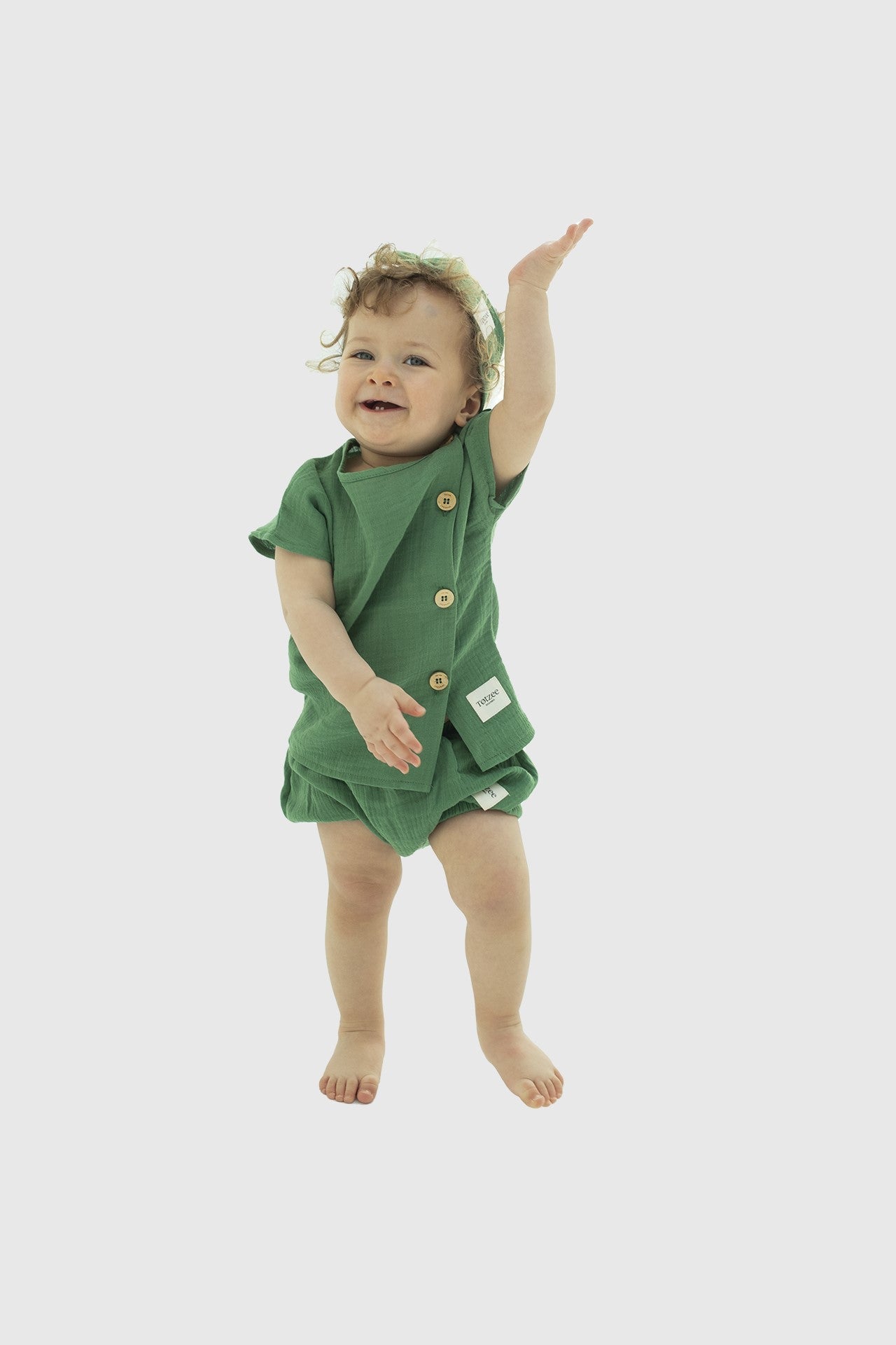 Müslin Yandan Düğmeli Üst Çimen Yeşili