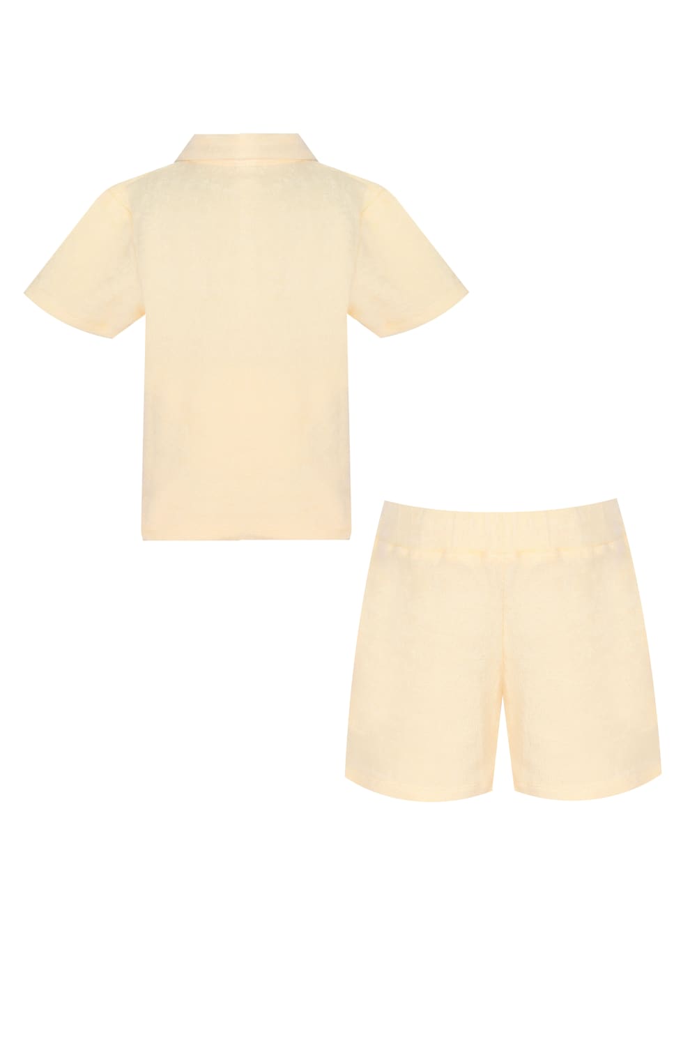 Şort, takımın alt kısmını oluşturur ve rahat kesimi, çocuğunuzun özgürce hareket etmesine izin verir. Lastikli bel detayı giyip çıkarmayı kolaylaştırırken, yakada bulunan düğme detayları takımı tamamlar.