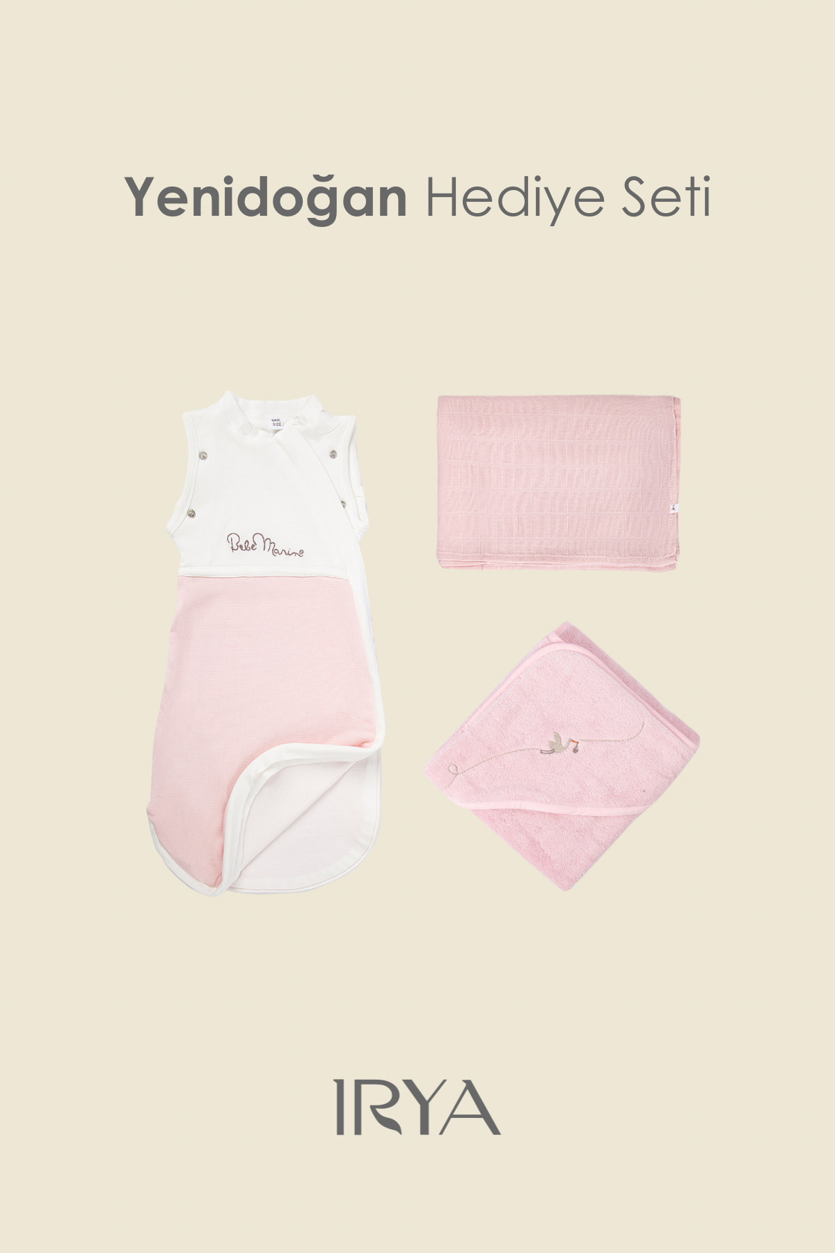 Bebemarin 3'lü Organik Yenidoğan Hediye Seti Pembe | Battaniye, Tulum, Kundak