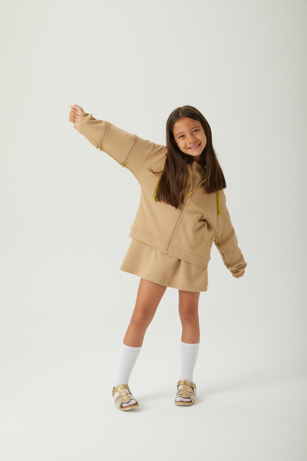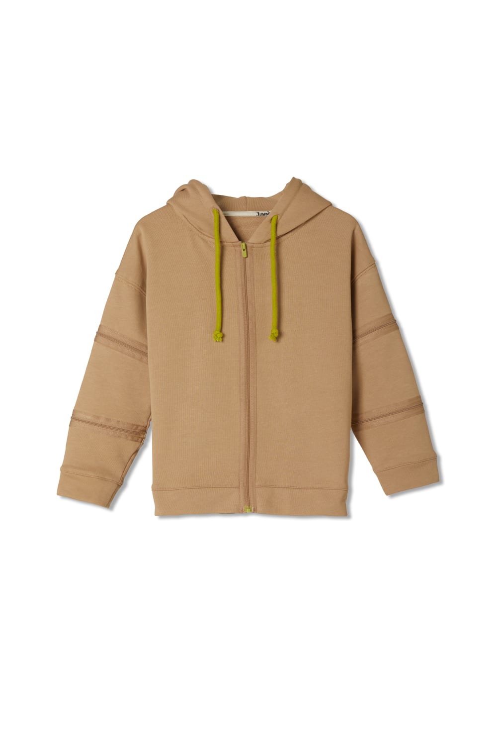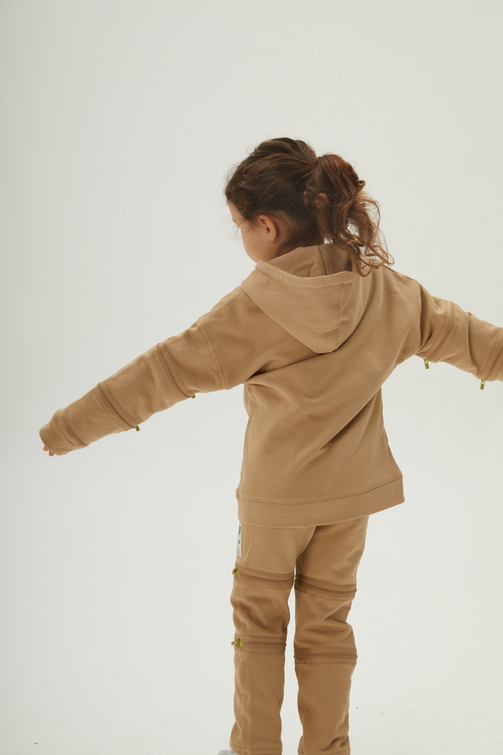 3'ü Bir Arada Dönüşebilir Hoodie Çıkarılabilir Dirsek Parçalı Kapüşonlu Çocuk Sweatshirt | Bej