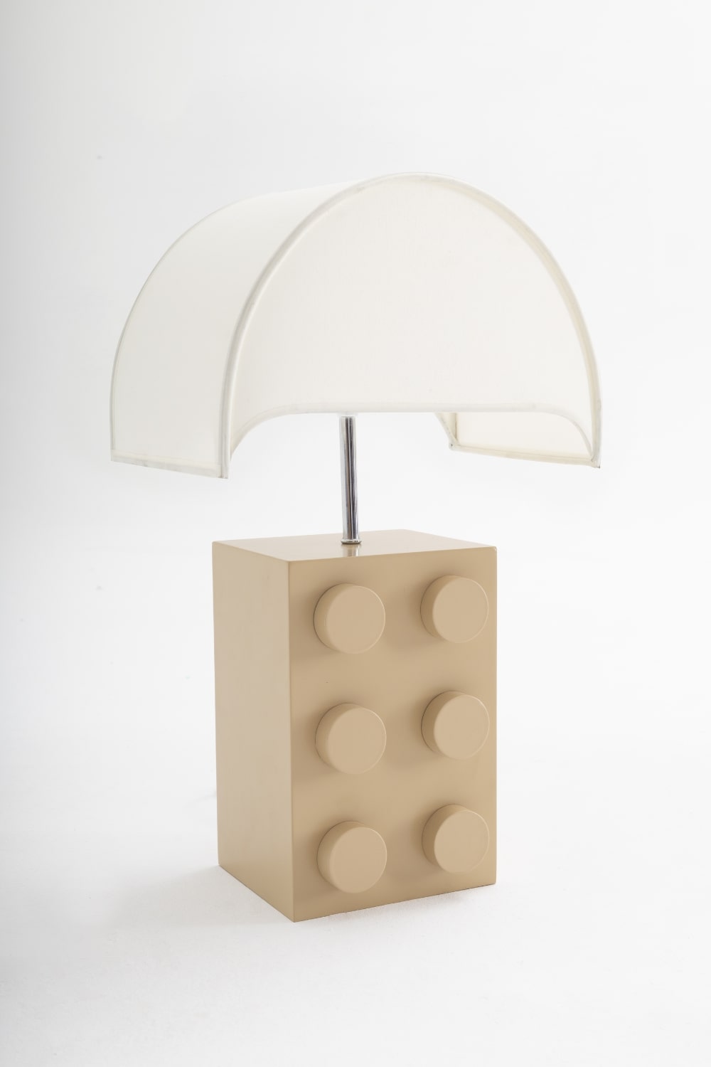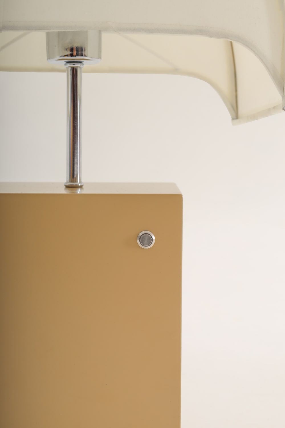 Viskon kumaş, dokusal zarafetiyle ışığı büyüleyici bir şekilde filtrelerken, doğal ahşap malzeme zamanla olgunlaşan bir karakteri yansıtıyor. Metalik düğme ise alışılmadık bir fonksiyonel estetik sunar; geleneksel anahtarlardan vazgeçilerek sade ve zarif bir minimalizmi temsil eder.