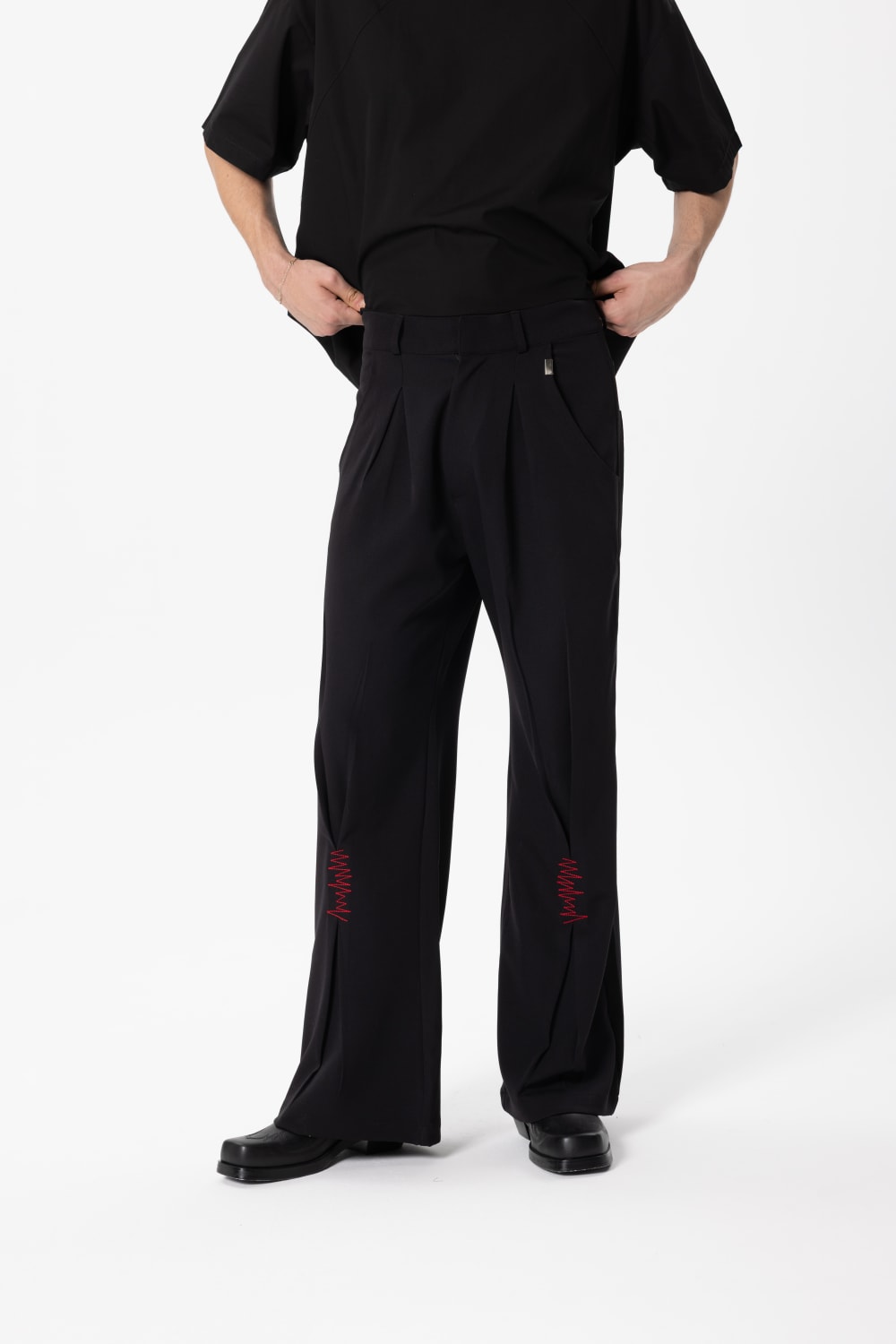 %100 polyesterden üretilen bu kırışmaz pantolon, hem şık hem de pratiktir ve gün boyu şeklini korur. Önündeki zarif işlemeler ve cep kenarlarındaki metal detaylarla görünümünüze modern ve özgün bir dokunuş katar. Hem günlük kullanım hem de özel günler için mükemmeldir.