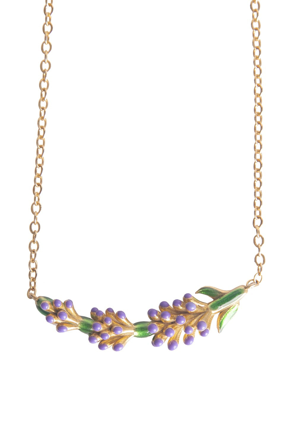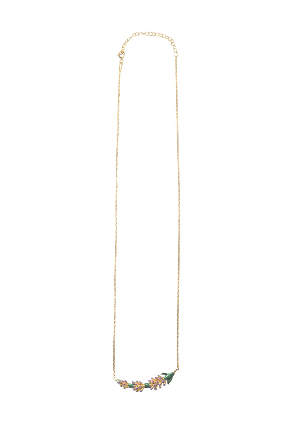 Gümüş zincir, toka ve uzatma ile 18 ayar mineli altın kaplama lavanta kolye