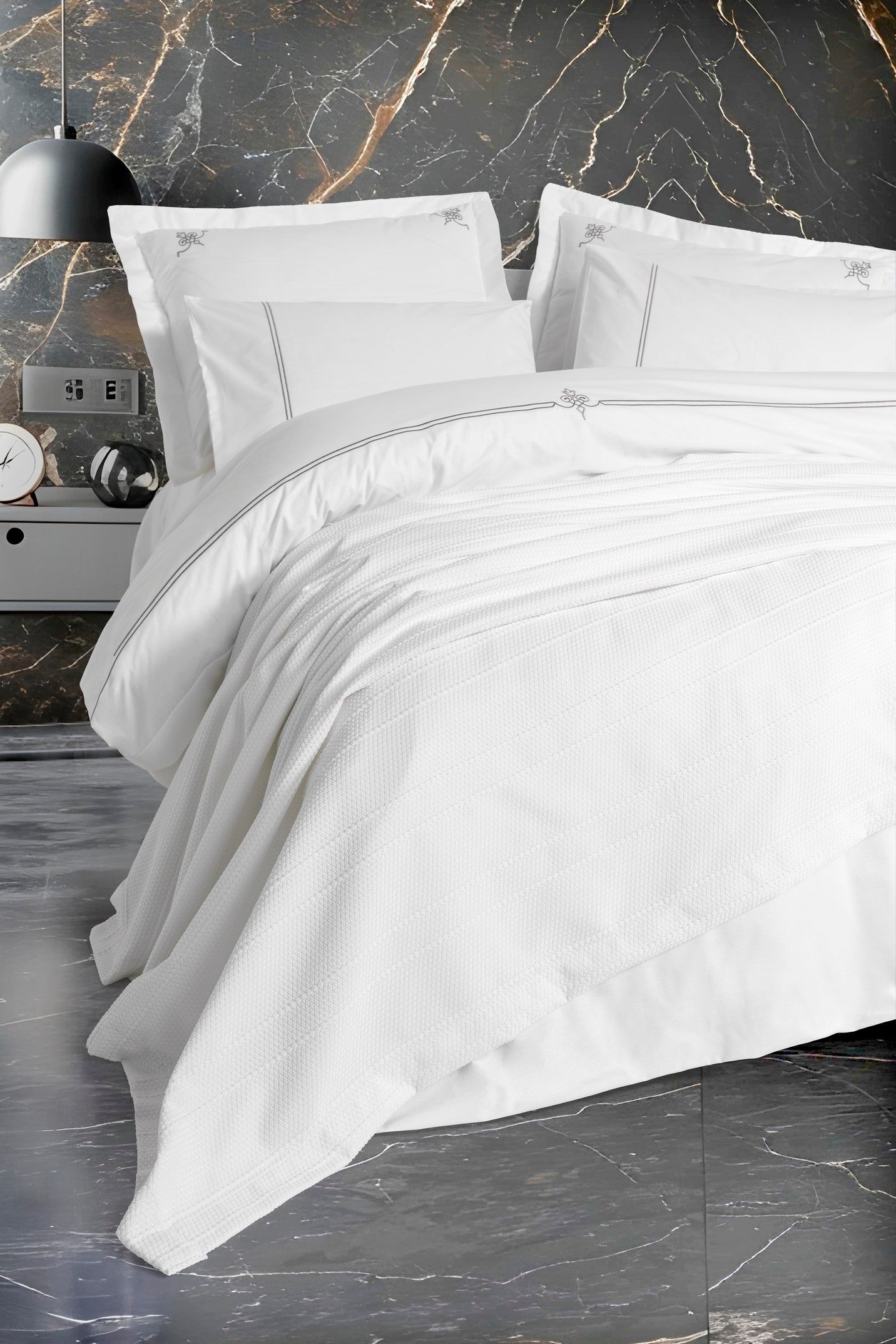 Classic Çeyizlik Çift Kişilik Pikeli Nevresim Takımı Güher Beyaz