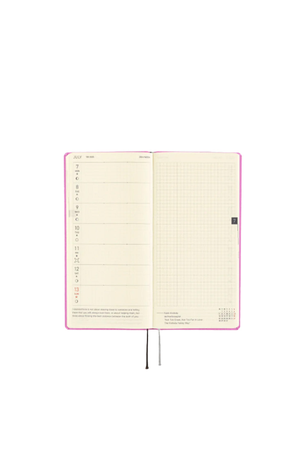 Weeks kitabının planlara veya günlük girişlerine yazmak için alanı vardır ve ayrıca arka tarafında 69 sayfalık kılavuz kağıt not sayfaları vardır (İngilizce baskısında 73 sayfa).