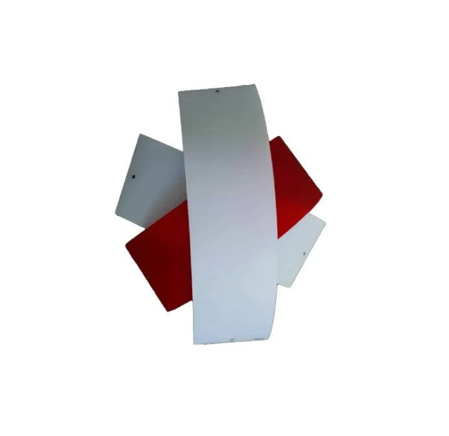 Panzeri'nin el işçiliğiyle şekillenen bu üfleme cam plafonyer, geometrik formları modern bir sanat dokunuşuna dönüştürüyor. Işığın cam yüzeyde yumuşak şekilde kırılması, mekana sıcak ve dengeli bir aydınlık katarken, kırmızı ve beyaz tonların dinamizmi dekorasyona karakter kazandırıyor. Hem çağdaş hem de minimal yaşam alanları için tasarlanan bu özel parça, bulunduğu her ortamda estetik bir odak noktası oluşturuyor.