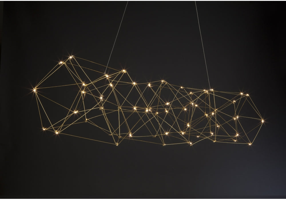 Cosmos rastgele görünüyor ancak yine de uyumlu bir görünüme sahip. Rastgele yerleştirilmiş LED devre kartları ve ince metal çubuklar, bu aydınlatma armatürünün iki temel unsurudur. Lambaya yapısını ve şeklini kazandırırlar. Devre kartlarının her iki yüzünde de LED’ler bulunur; ışığın üçte ikisi aşağıya, üçte biri yukarıya yönelir. Her Cosmos el yapımıdır, bu da her modelin benzersiz olmasını sağlar.