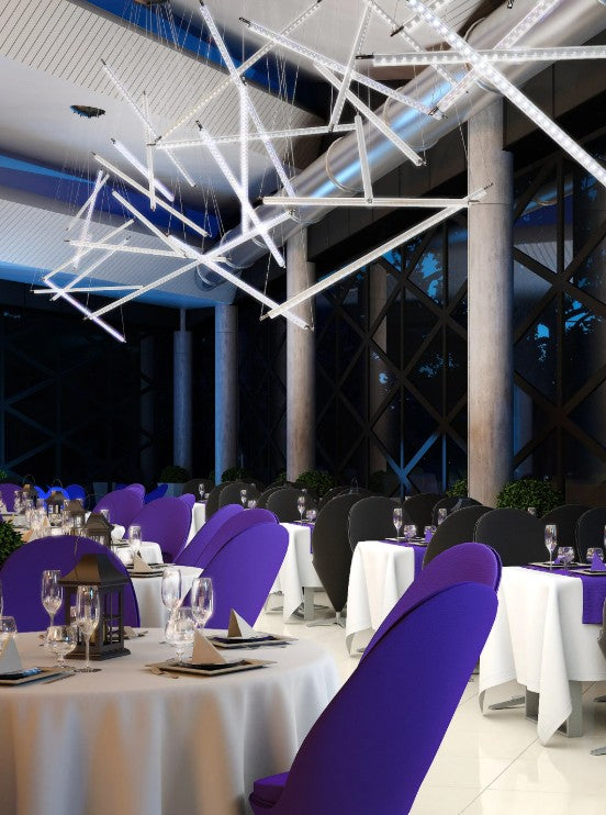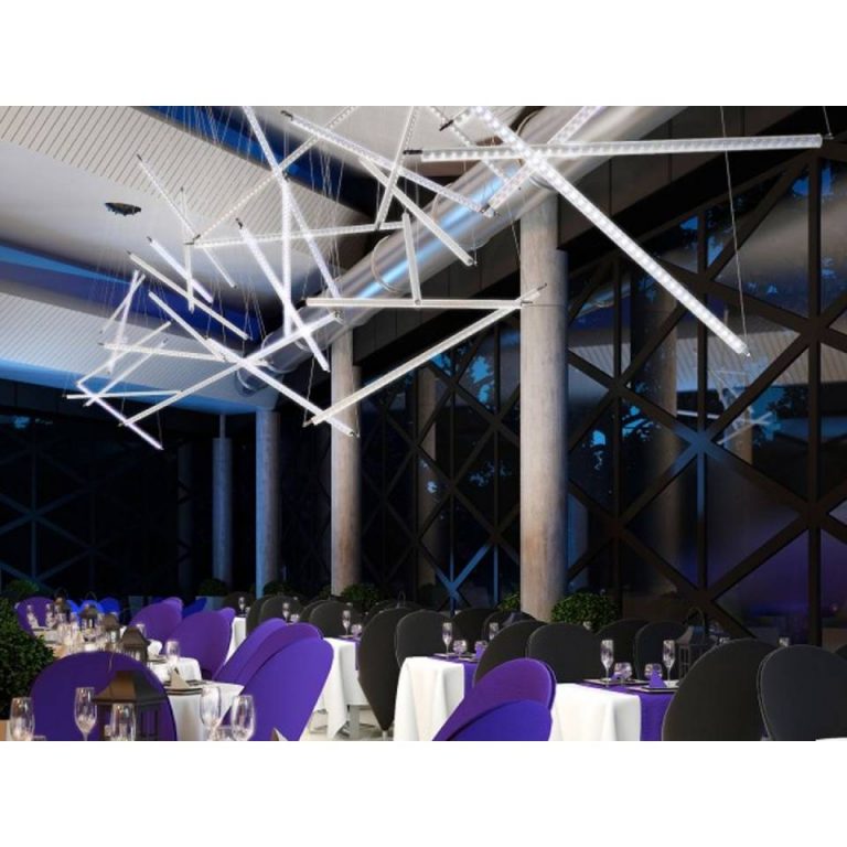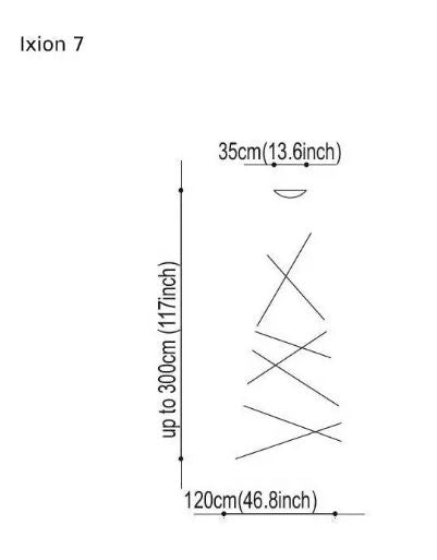 Ixion, yarısı buzlu, yarısı şeffaf olan ve ışığı daha dağınık veya daha doğrudan hale getirmek için döndürülebilen Tì cam tüplere sahip bir sarkıt lambadır.
