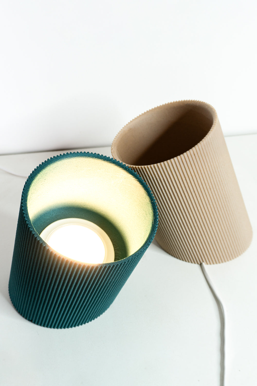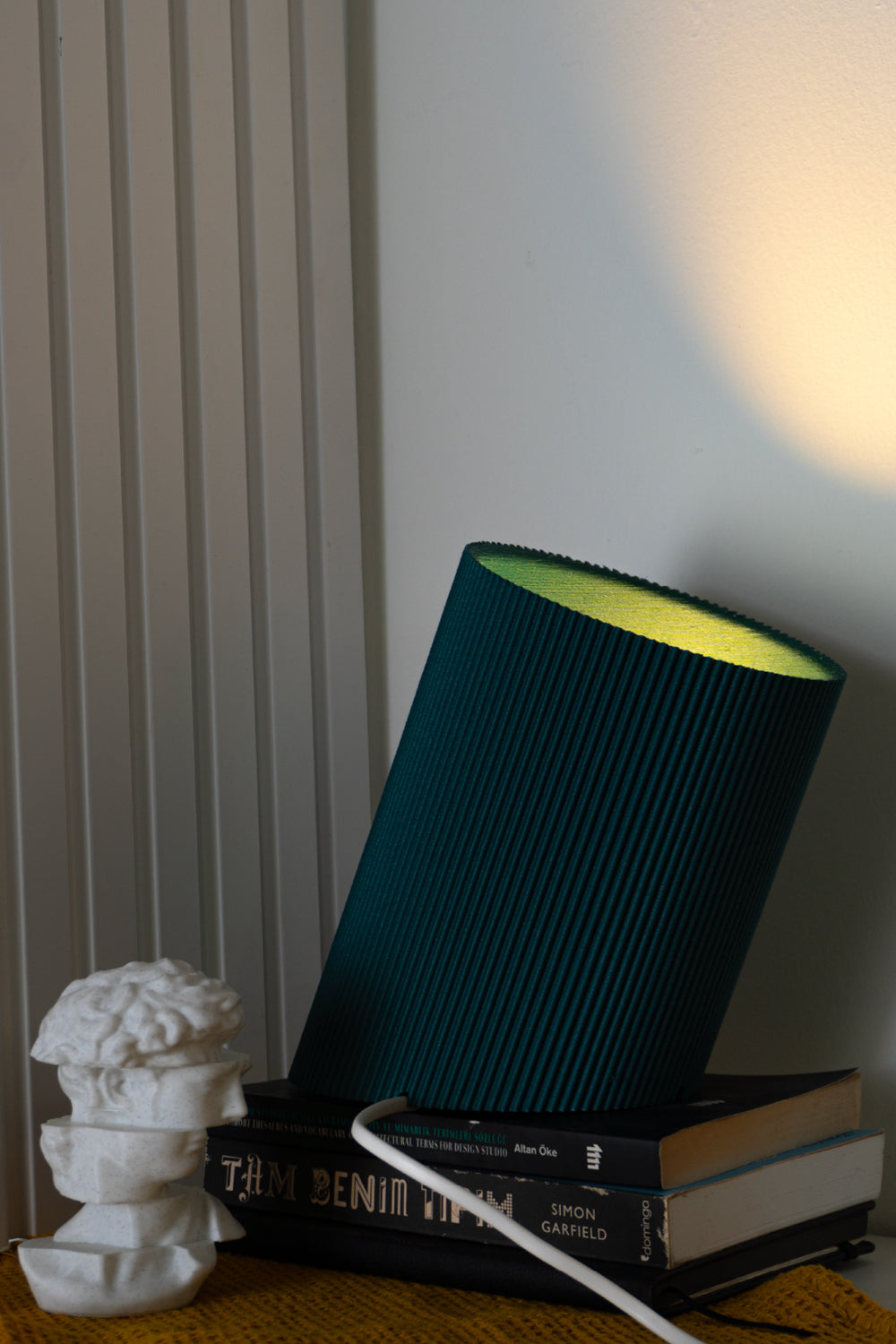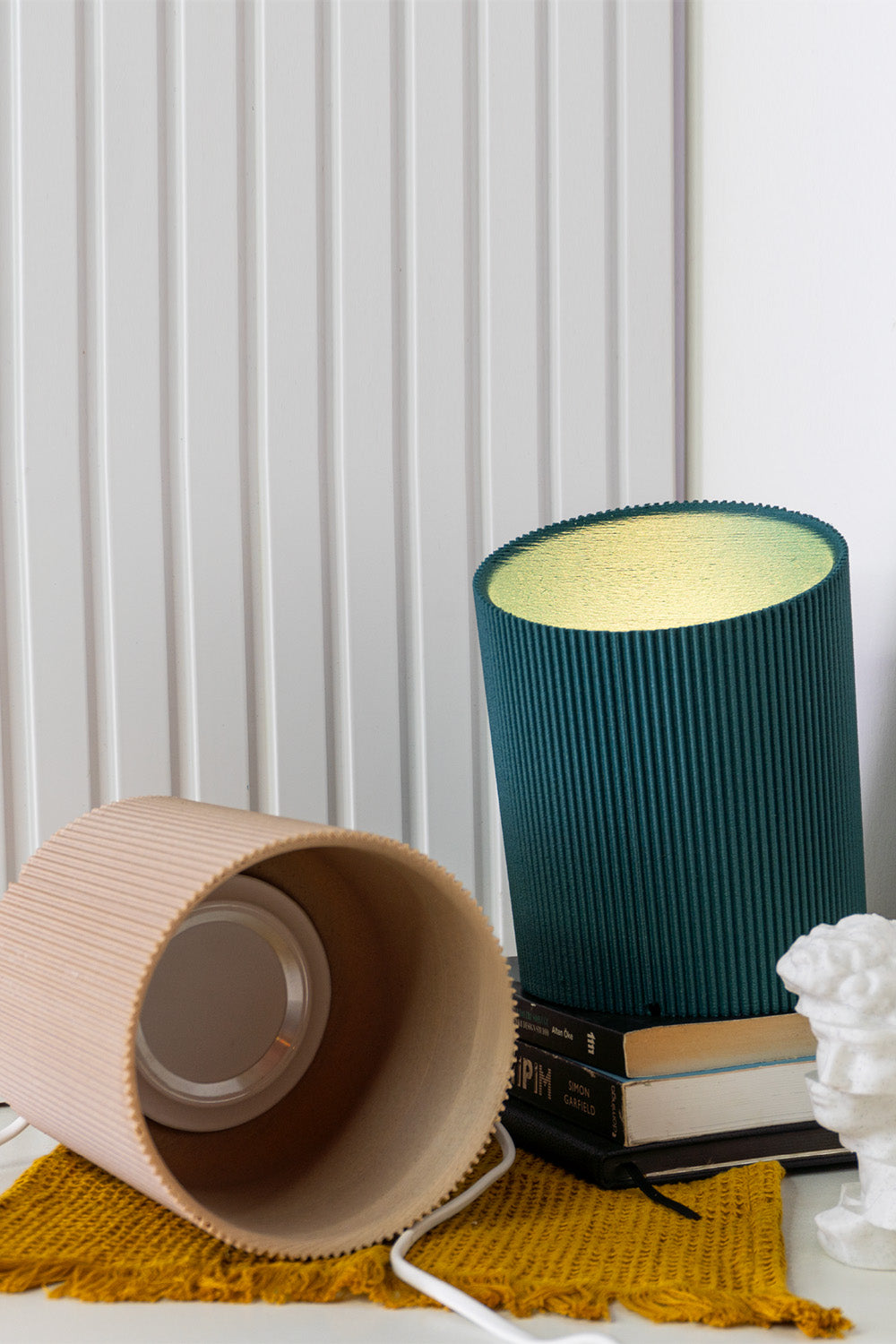 %30 ahşap katkılı organik PLA malzemeden üretilen bu lamba, hem çevre dostu hem de şık bir görünüme sahiptir.