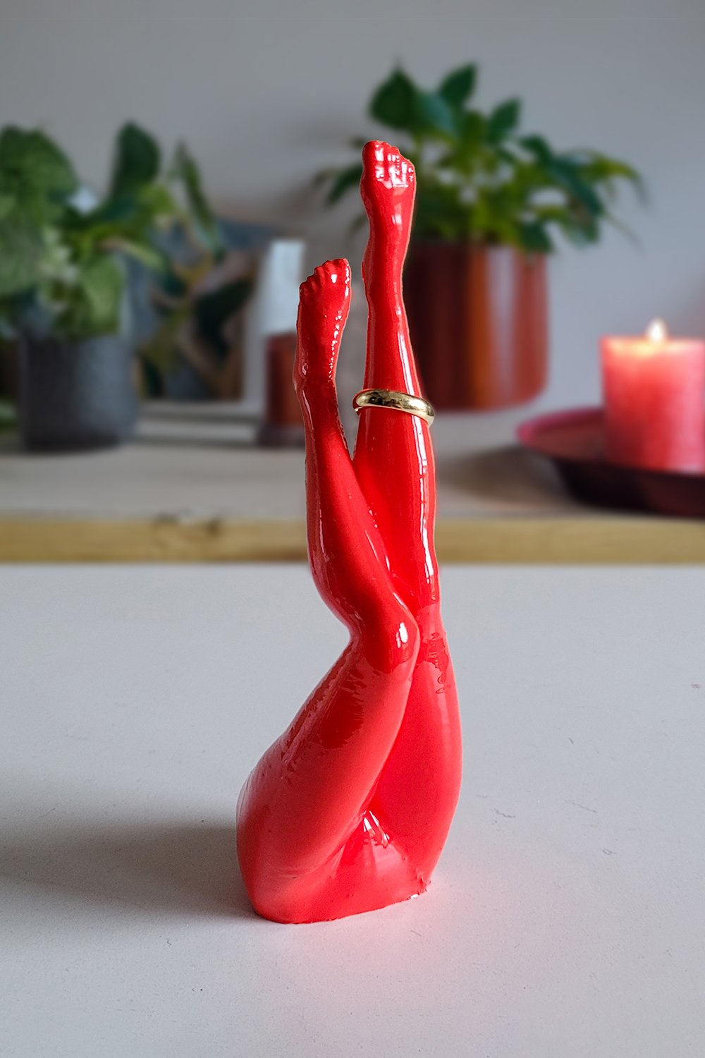 Üç boyutlu baskı teknolojisinin yenilikçi gücüyle şekillendi, el işçiliğinin özeniyle mükemmelleştirildi. Bu biopolimerden üretilmiş kadın bacağı şeklindeki yüzük düzenleyici, hem estetik bir dekoratif parça hem de işlevsel bir yüzük standı olarak evinize zarafet katıyor. 17 cm yüksekliğindeki bu düzenleyici, çevre dostu malzemesi ve zarif tasarımıyla dekorasyonunda farklılık arayanlar için ideal bir parça. Hem şık hem de kullanışlı bu figür ile evinizi süsleyin