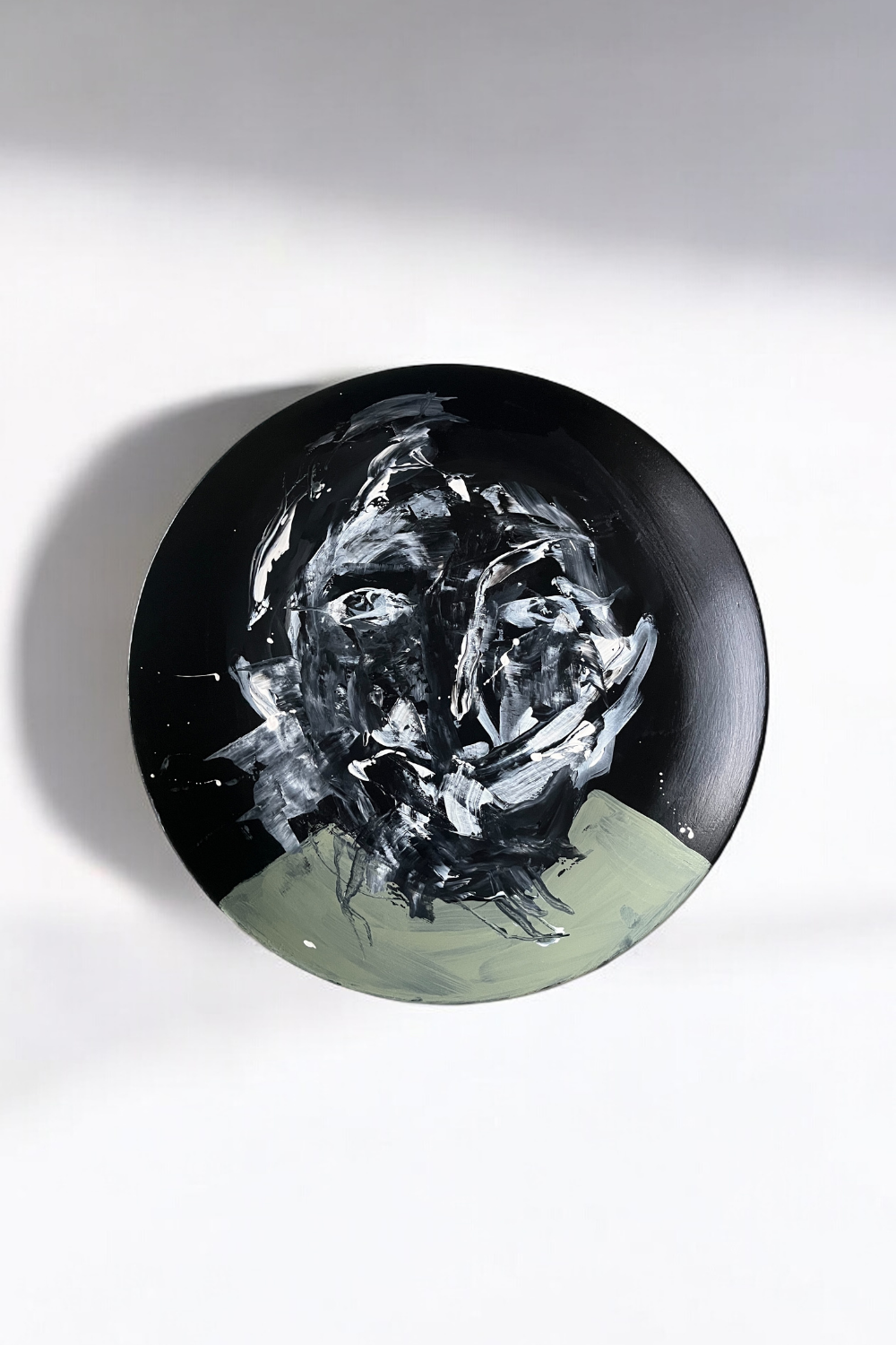 Seramik üzerine yağlı ve akrilik boya uygulayarak elde edilmiştir. Verniklidir.