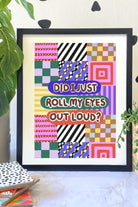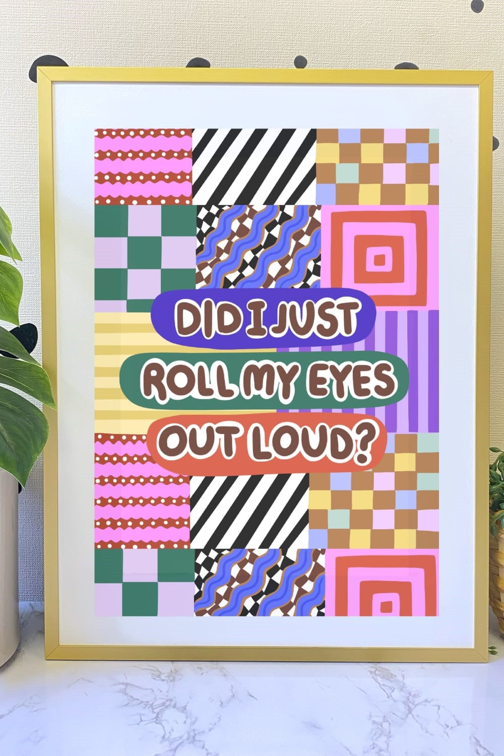 "Did I Just Roll My Eyes Out Loud?" baskısı, anlık bir terapi sunarak sinirleri yatıştırır ve gizli bir mesaj ile yaşam alanlarınıza renk katar!