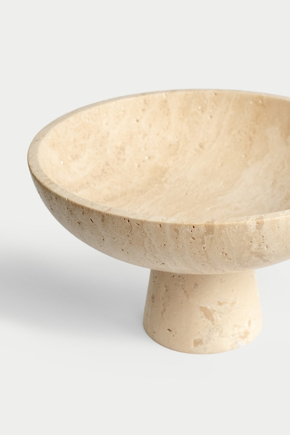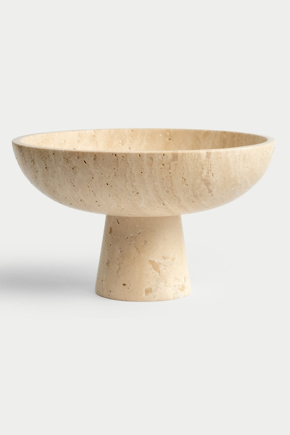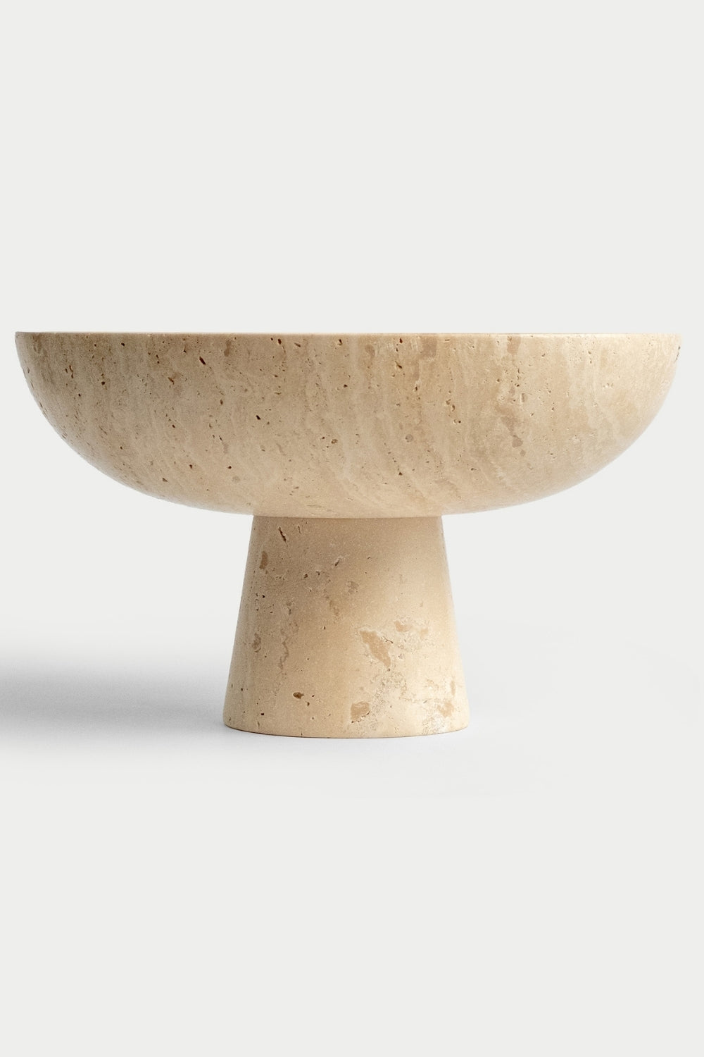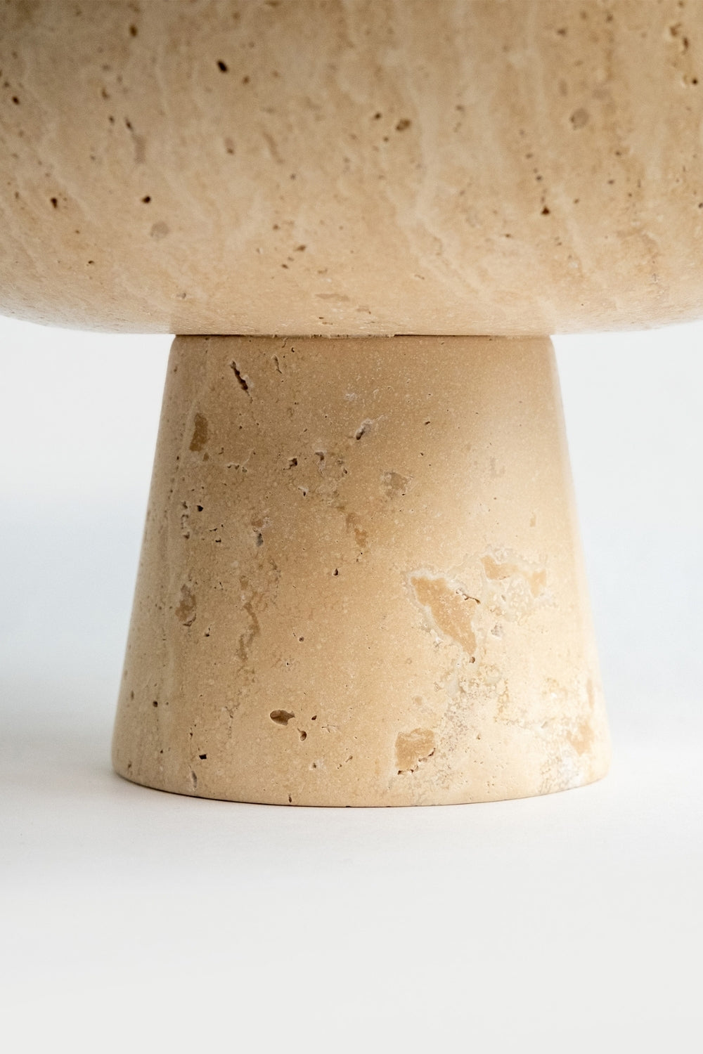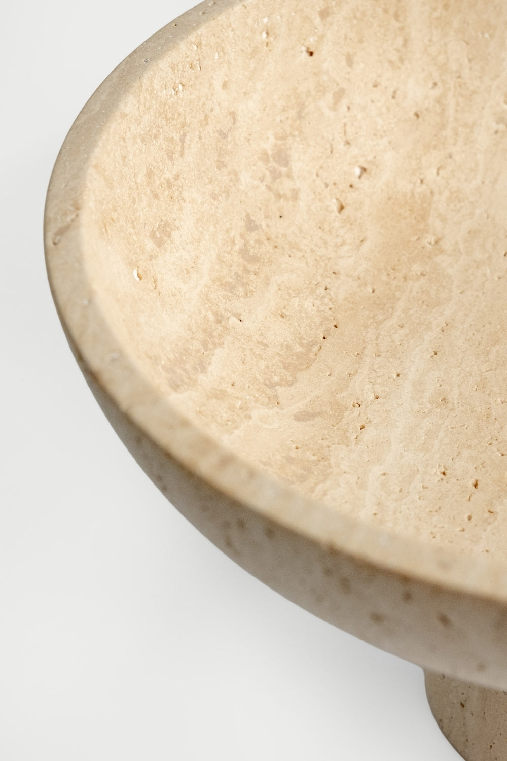 Ürün Özellikleri:Malzeme: Doğal traverten malzemeBoyutlar: Kase Çap: 25 cm, Yükseklik: 15 cm, Ayak Çap: 9,5 cm, Ayak Yükseklik: 8 cmDoğal malzeme: Özel işlenmiş, her biri benzersiz el işçiliği
