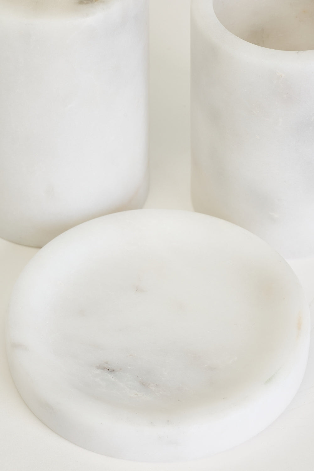 Tarz ve İlham:Mermerin doğal, açık beyaz tonu banyo ambiyansına sıcaklık ve organik bir doku katıyor. Silindirik, mat dokusu, doğal malzemenin ağırlığı ve hissi ile birleşerek ürüne kalıcı ve zamansız bir his verir.