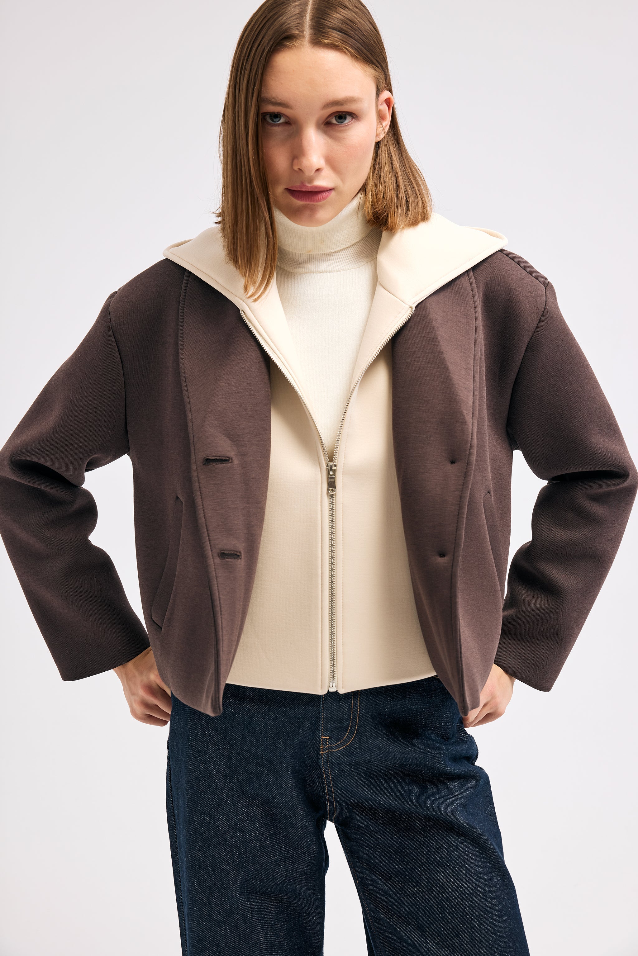 Kapüşonlu Kahverengi Ceket