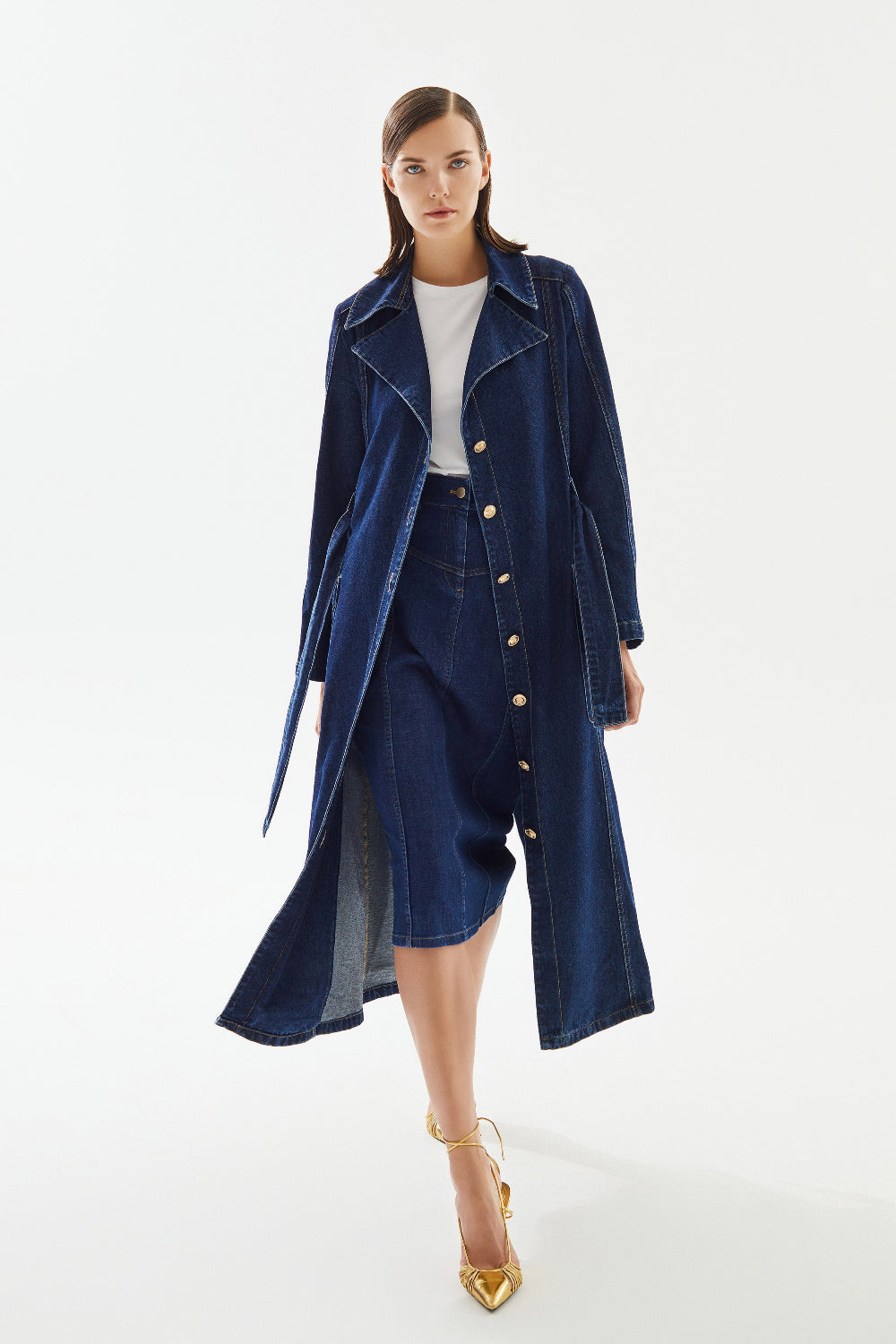 Şıklık ve fonksiyonelliği bir arada sunan kadın denim trençkot, geniş yakasıyla modern ve dikkat çekici bir görünüm yaratır. İki cep detayı sayesinde hem kullanışlı hem de stil sahibi bir tasarıma sahiptir. %86 pamuk ve %14 reused cotton içeren denim dokuma kumaşı, çevre dostu ve dayanıklı yapısıyla uzun ömürlü kullanım sağlar.