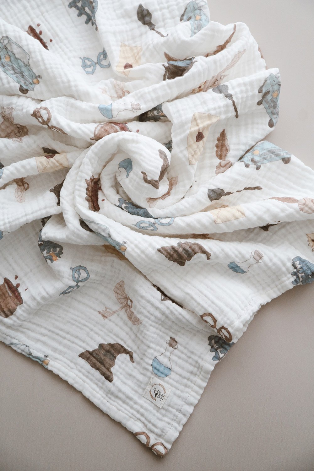 Dört Katli Magic World Desen Organik Müslin Örtü