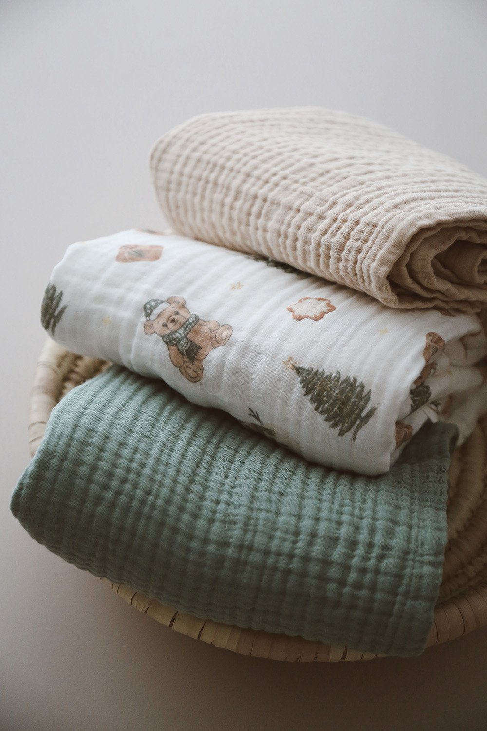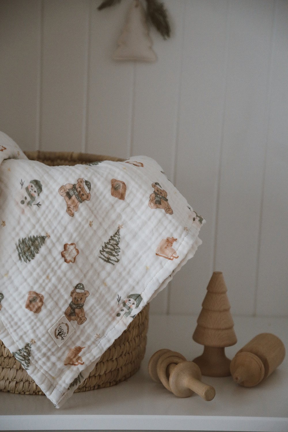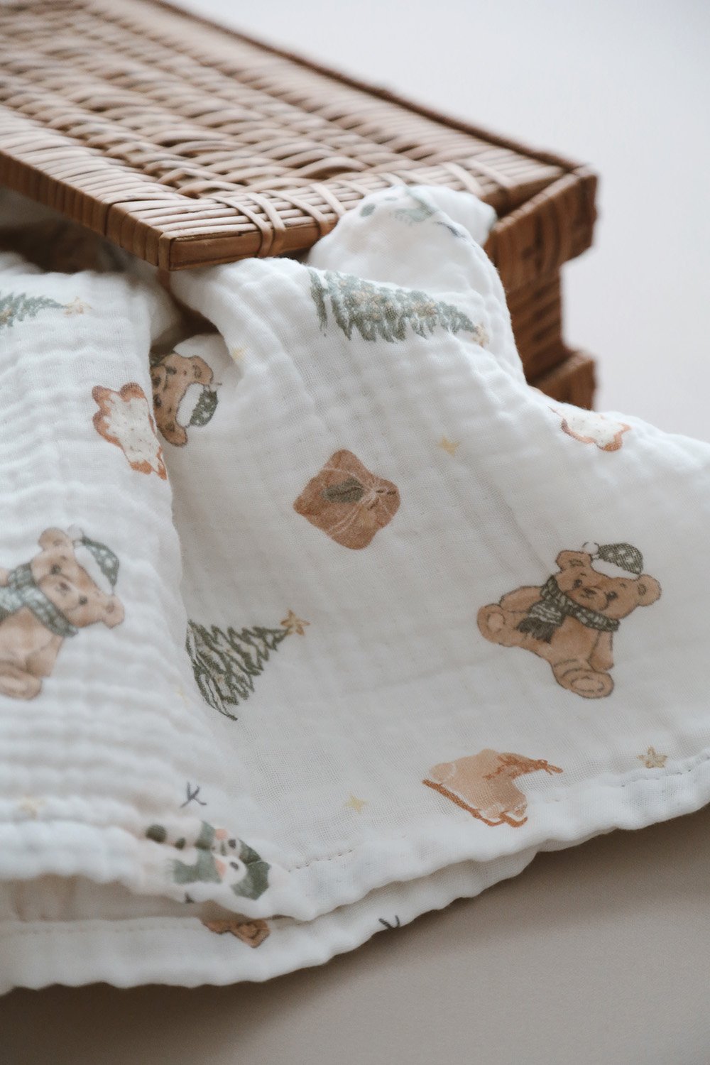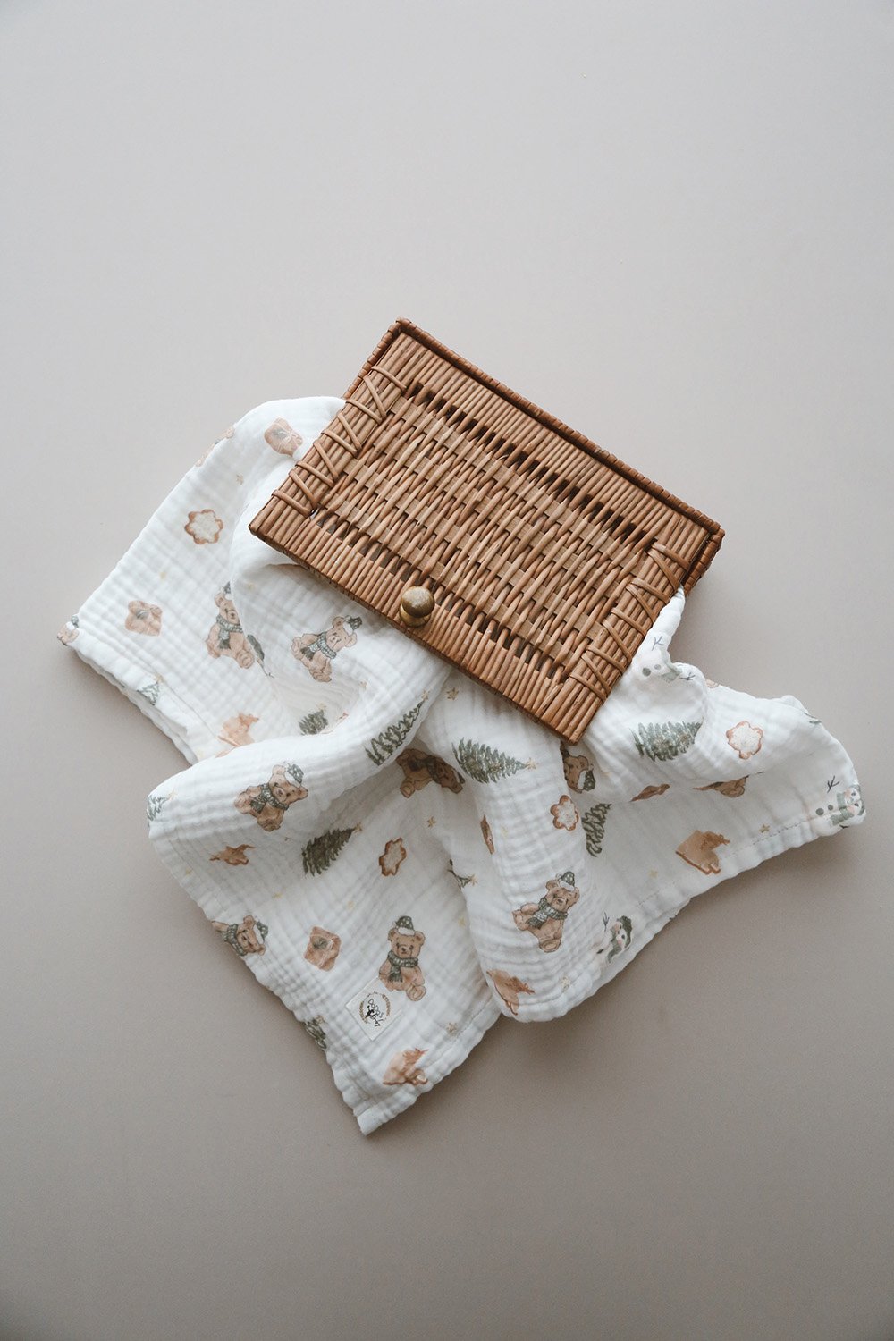 * Dört katlı NOEL TEMA desen özel yıkama yaptırılmış olup kareli müslin organik kumaştan üretilmiştir.Desenler markamız adına özel tasarlanmıştır.Kumaşımız 100 % SAF PAMUKTUR ve desenlerimiz ORGANİK BOYALARLA renklendirilmiştir.