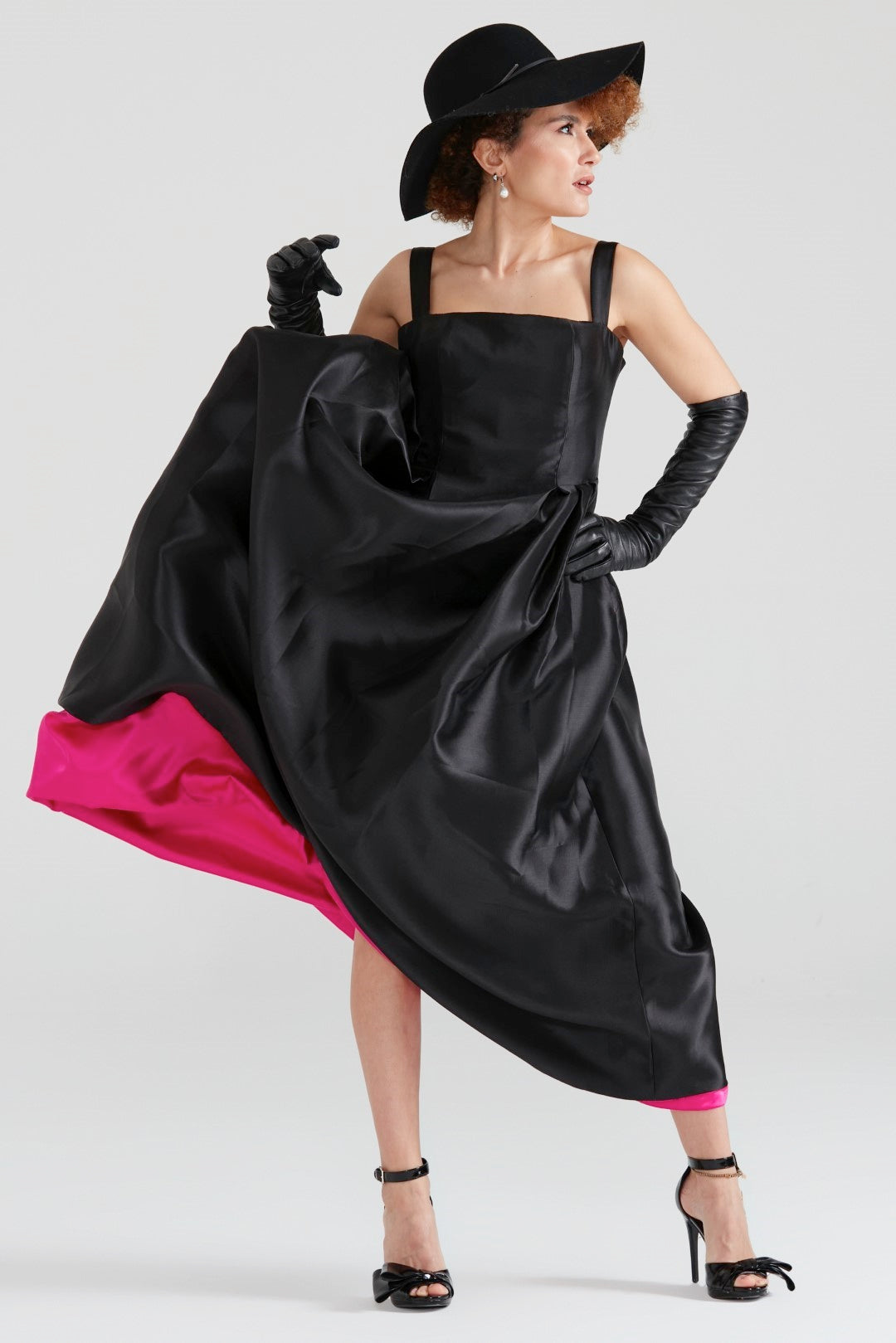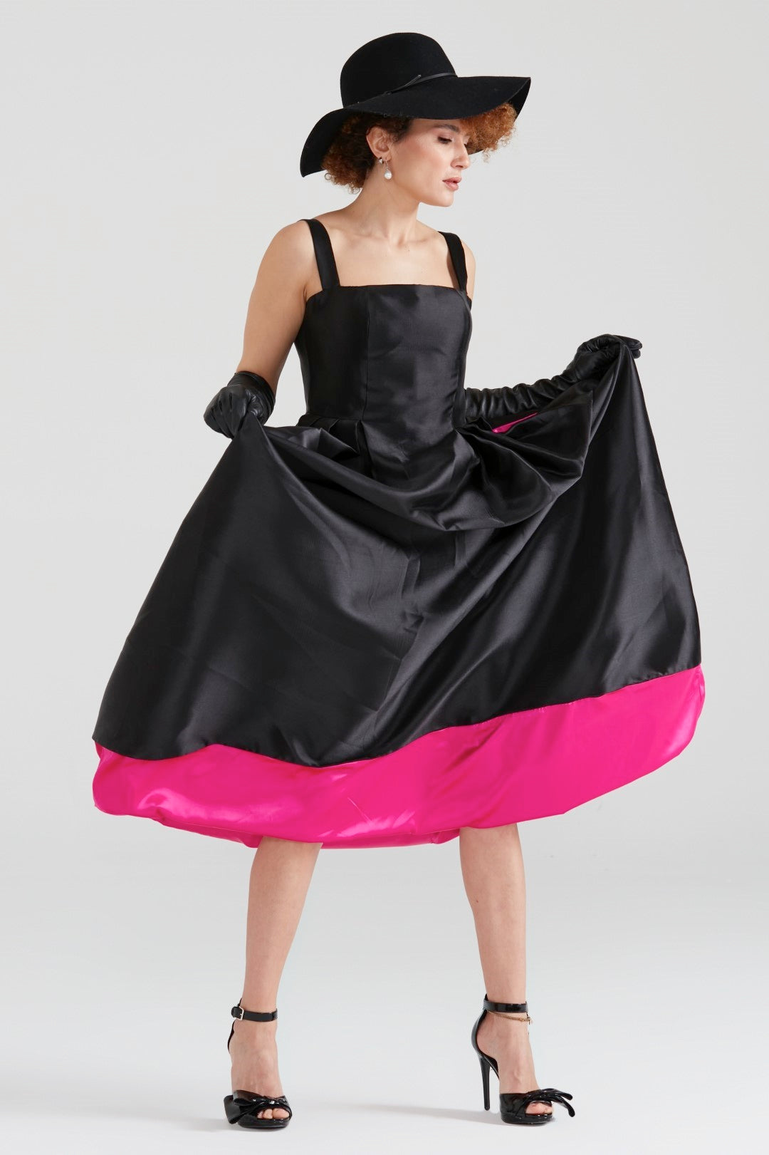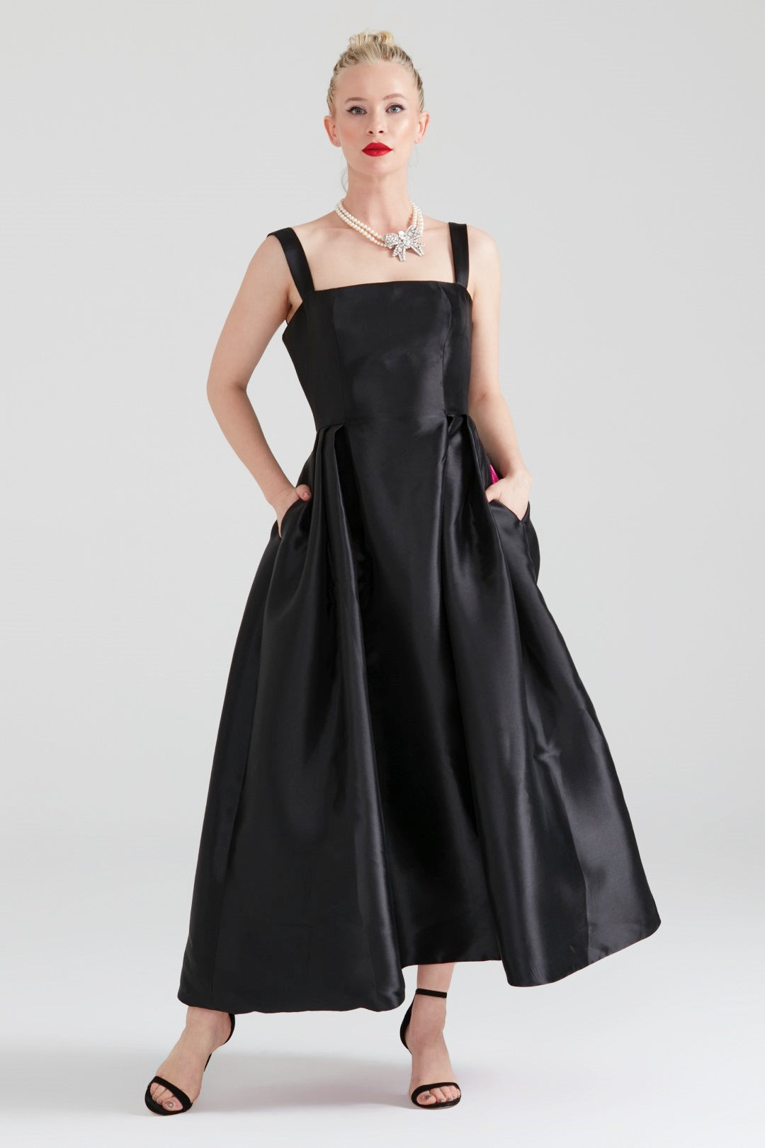Cuddly Charm Düz Yaka Midi Elbise Siyah