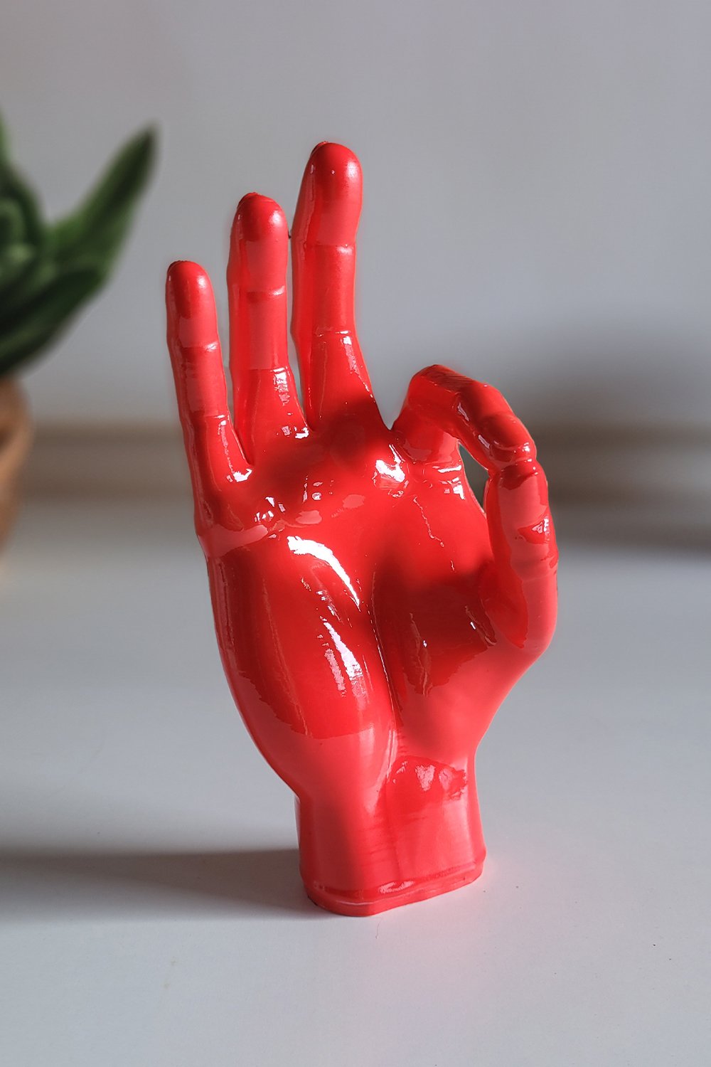 Bu özel biopolimerden üretilmiş Okay el figürü, pozitif enerji ve onayın sembolü olarak evinize anlam katıyor. 20 cm yüksekliğindeki bu heykel, çevre dostu malzemesi ve modern tasarımıyla, dekorasyonunda farklılık ve pozitif bir dokunuş arayanlar için ideal bir parça. Hem şık hem de anlam dolu bu aksesuarla evinizi süsleyin