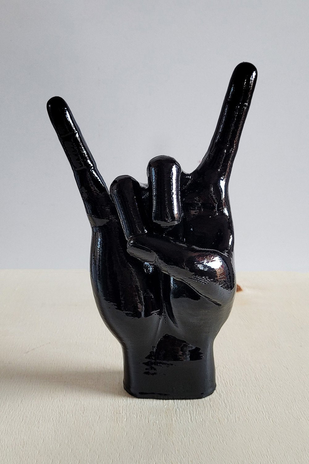 Bu benzersiz el figürü, rock işareti yapan ikonik tasarımıyla dikkat çekiyor. Biopolimer malzemeden üretilmiş olan bu 20 cm yüksekliğindeki heykel, müzik tutkunlarının ve farklı dekoratif unsurlar arayanların vazgeçilmezi olacak. Hem çevre dostu hem de eğlenceli bir dekoratif parça olarak, evinizde fark yaratın.