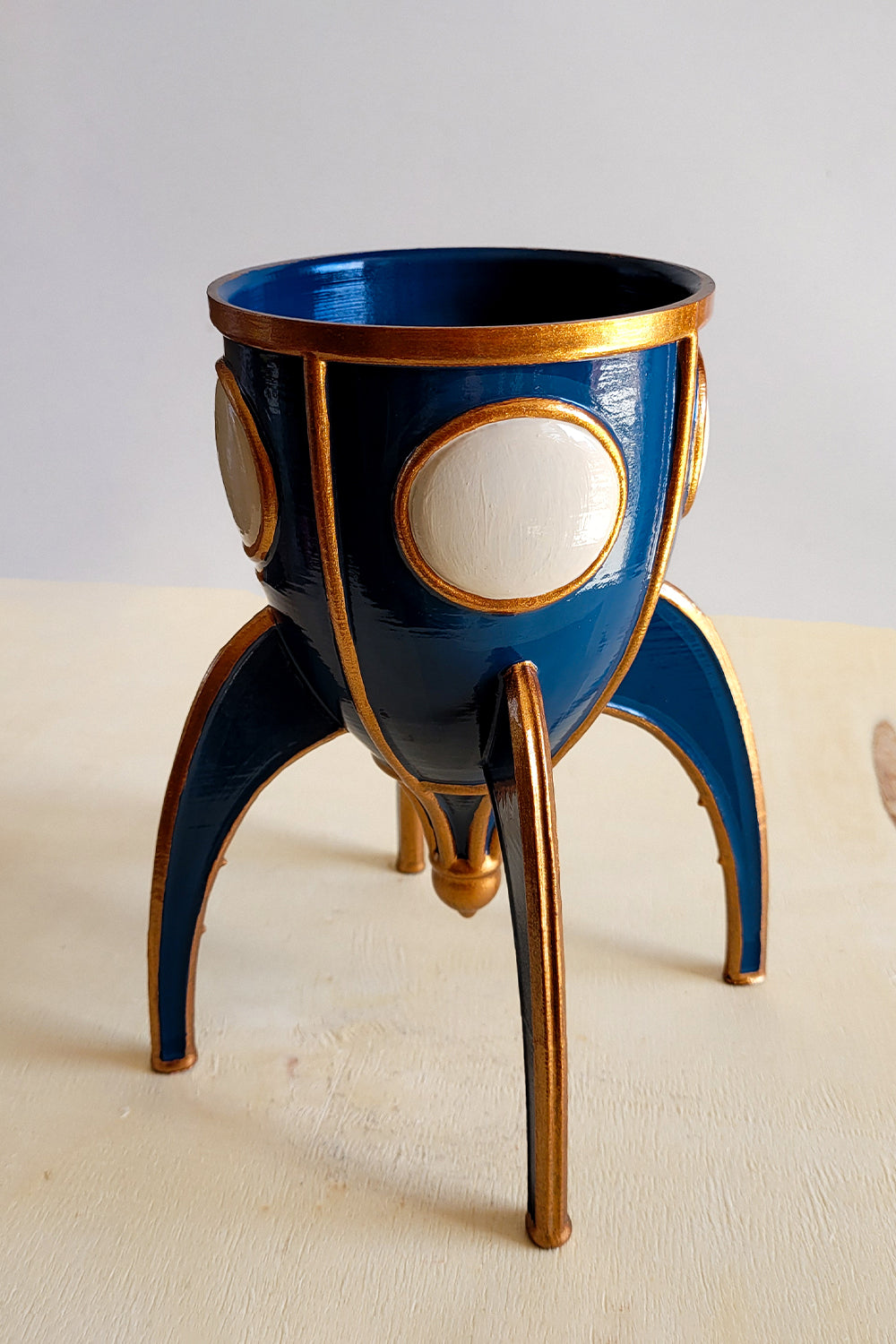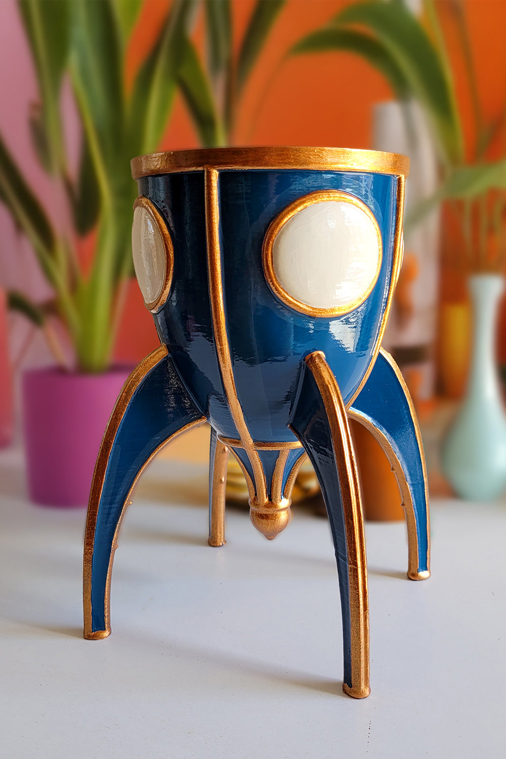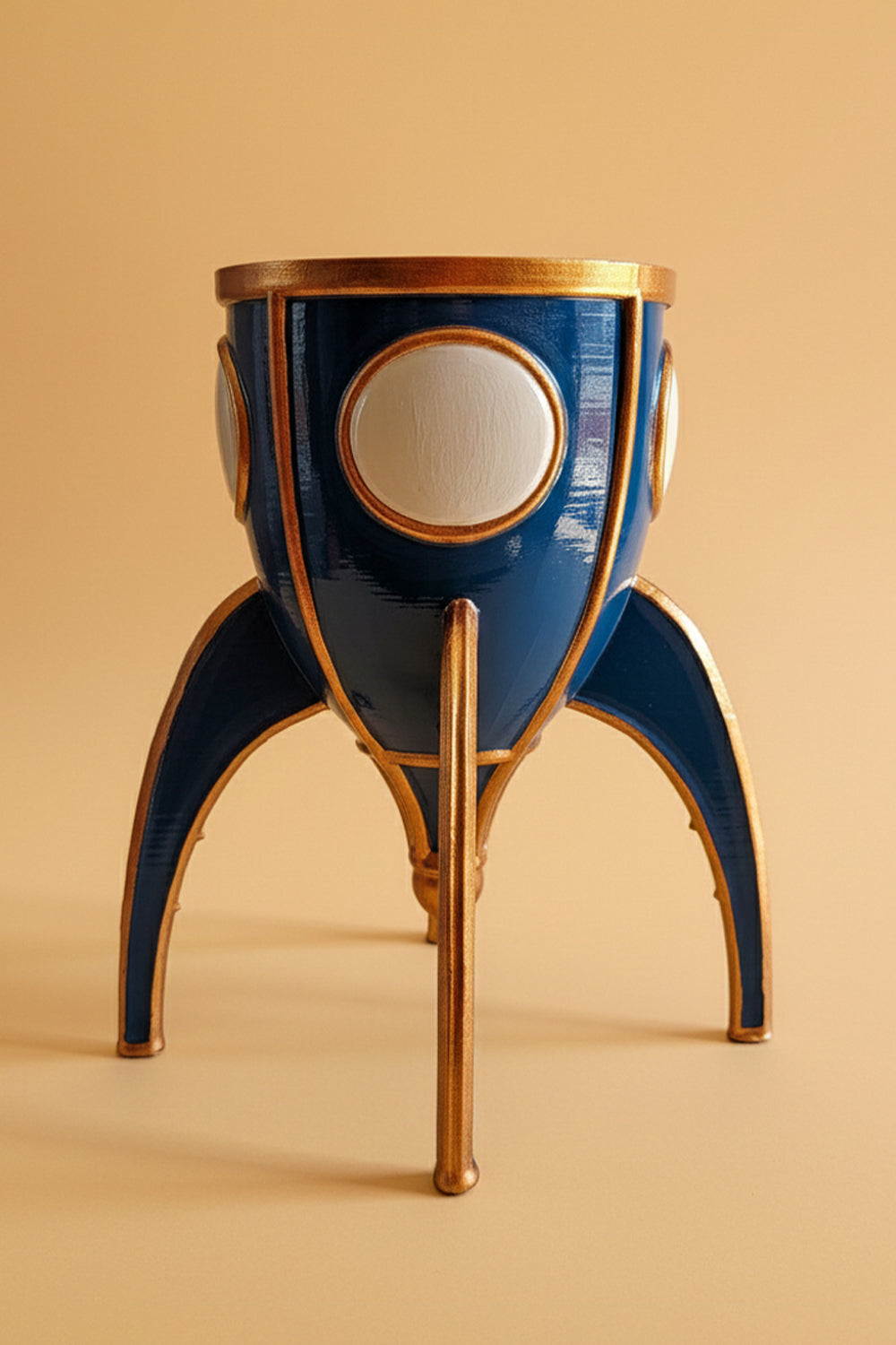 Dört ayaklı bu roket formundaki saksı, fütüristik havası ve heykelsi duruşuyla sıradan saksıların çok ötesinde. Masa üstü, raf ya da kitaplık gibi alanlara karakterli ve eğlenceli bir dokunuş katmak isteyenler için birebir.