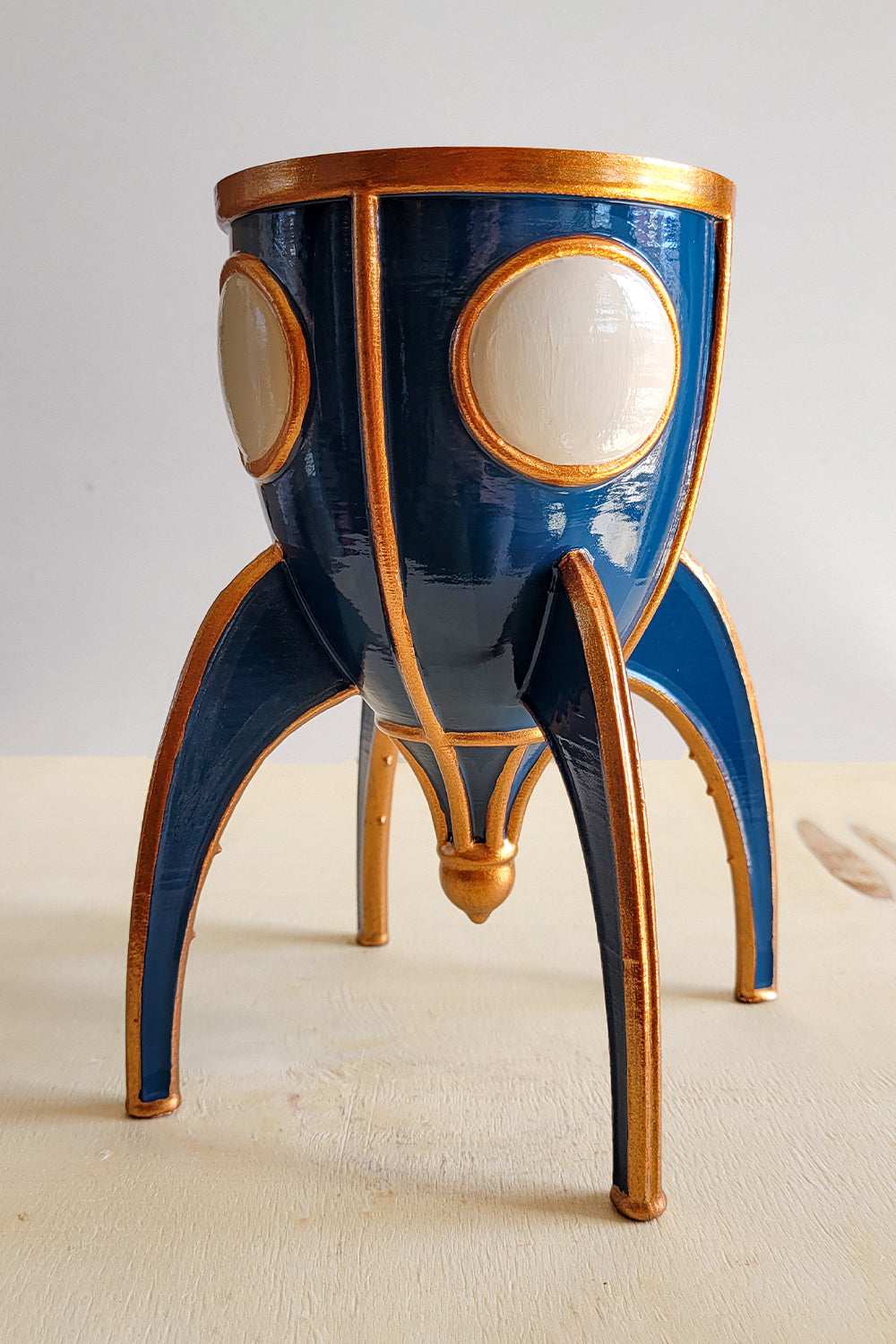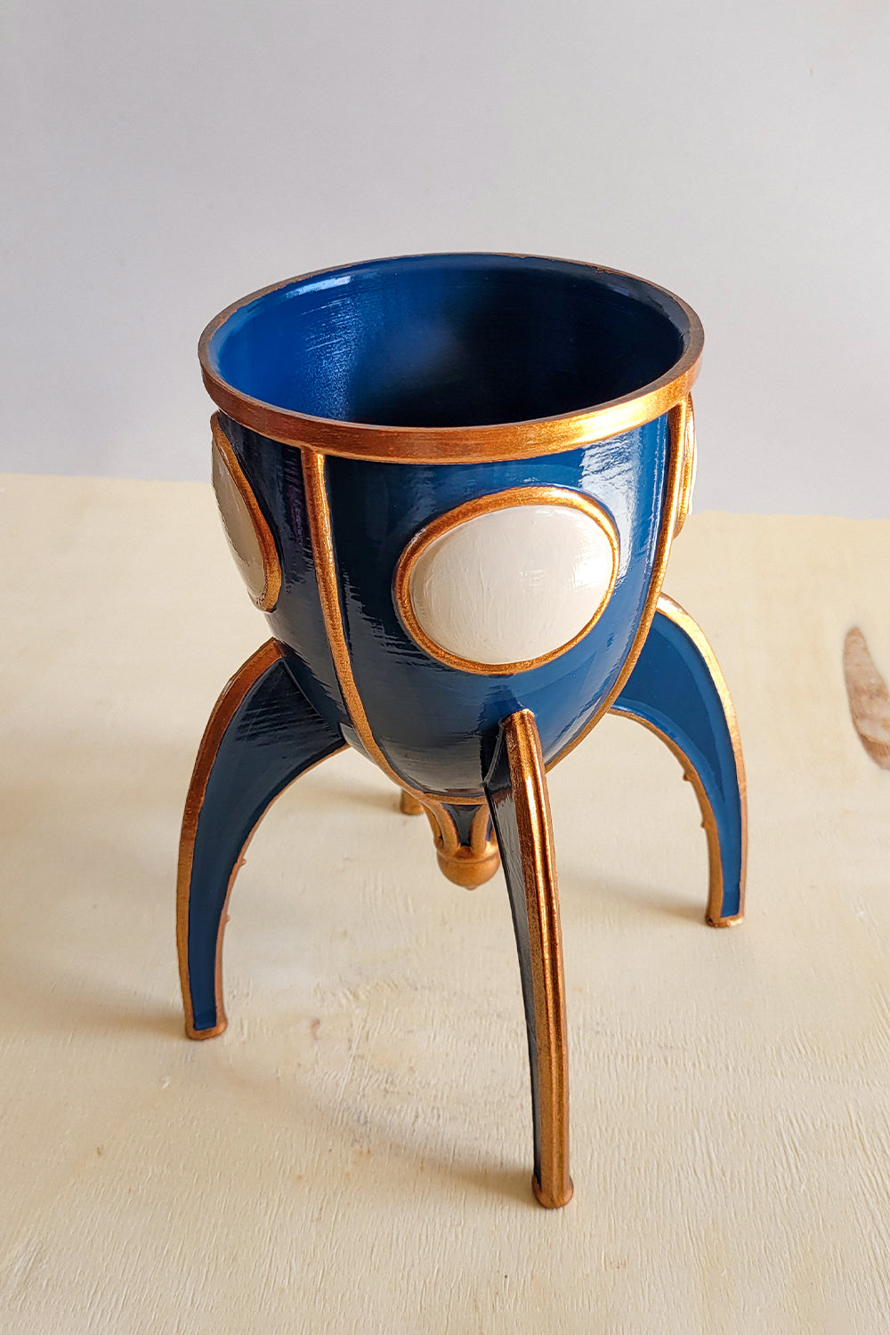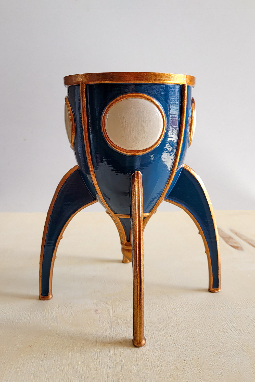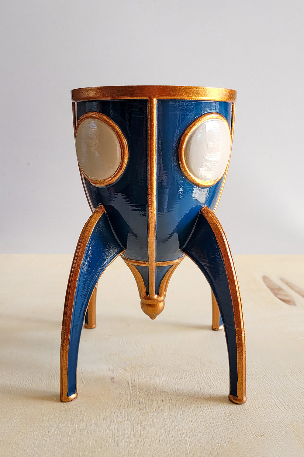 Dört ayaklı bu roket formundaki saksı, fütüristik havası ve heykelsi duruşuyla sıradan saksıların çok ötesinde. Masa üstü, raf ya da kitaplık gibi alanlara karakterli ve eğlenceli bir dokunuş katmak isteyenler için birebir.