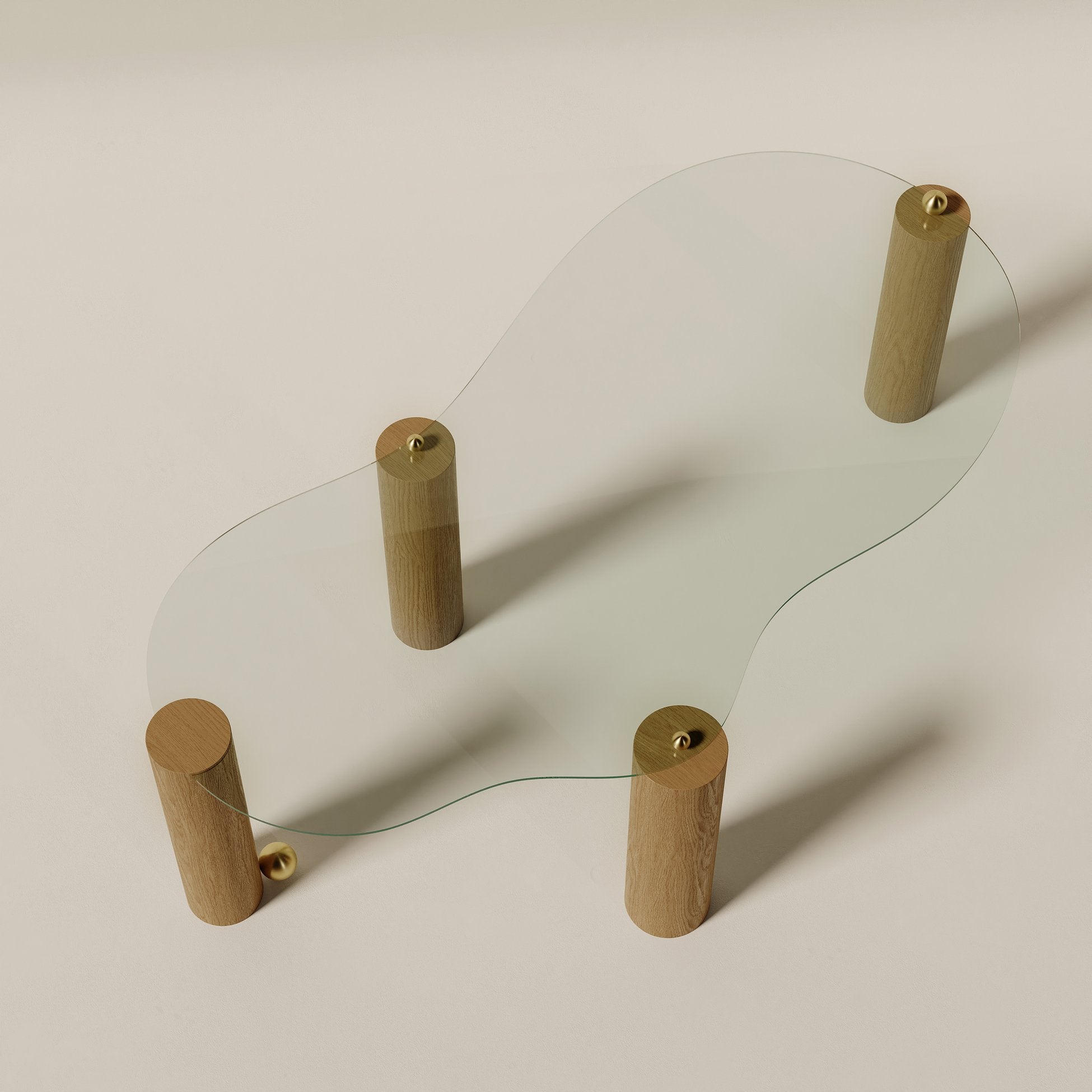 Malzeme: Meşe kaplama silindir ayaklar, Pirinç küre düğmeler, Cam tabla