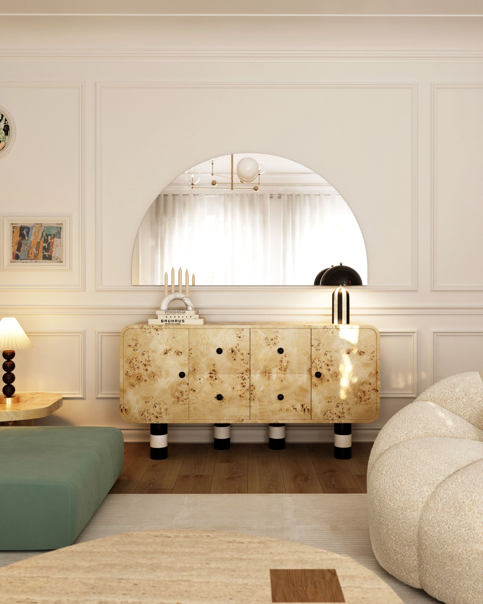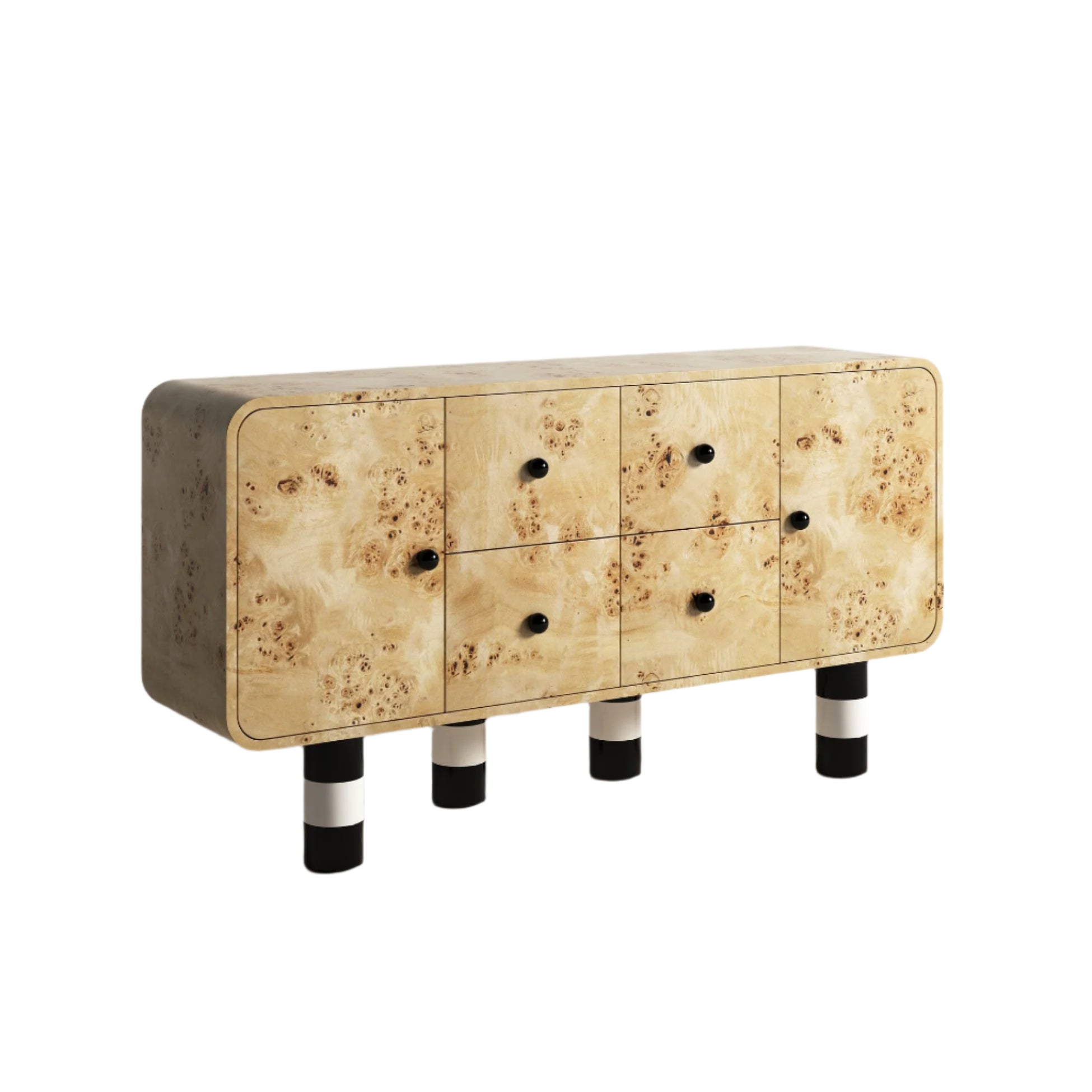 Happy Büfe özelleştirilebilir tasarımı ile yemek odaları ve yatak odalarında dikkatleri üzerine çeker. Doğal meşe kaplama dolap ve parlak lake ayakları ile neşeli bir görüntü sunar. Ayak ve kulplardaki renkleri dilediğiniz gibi özelleştirebilirsiniz.