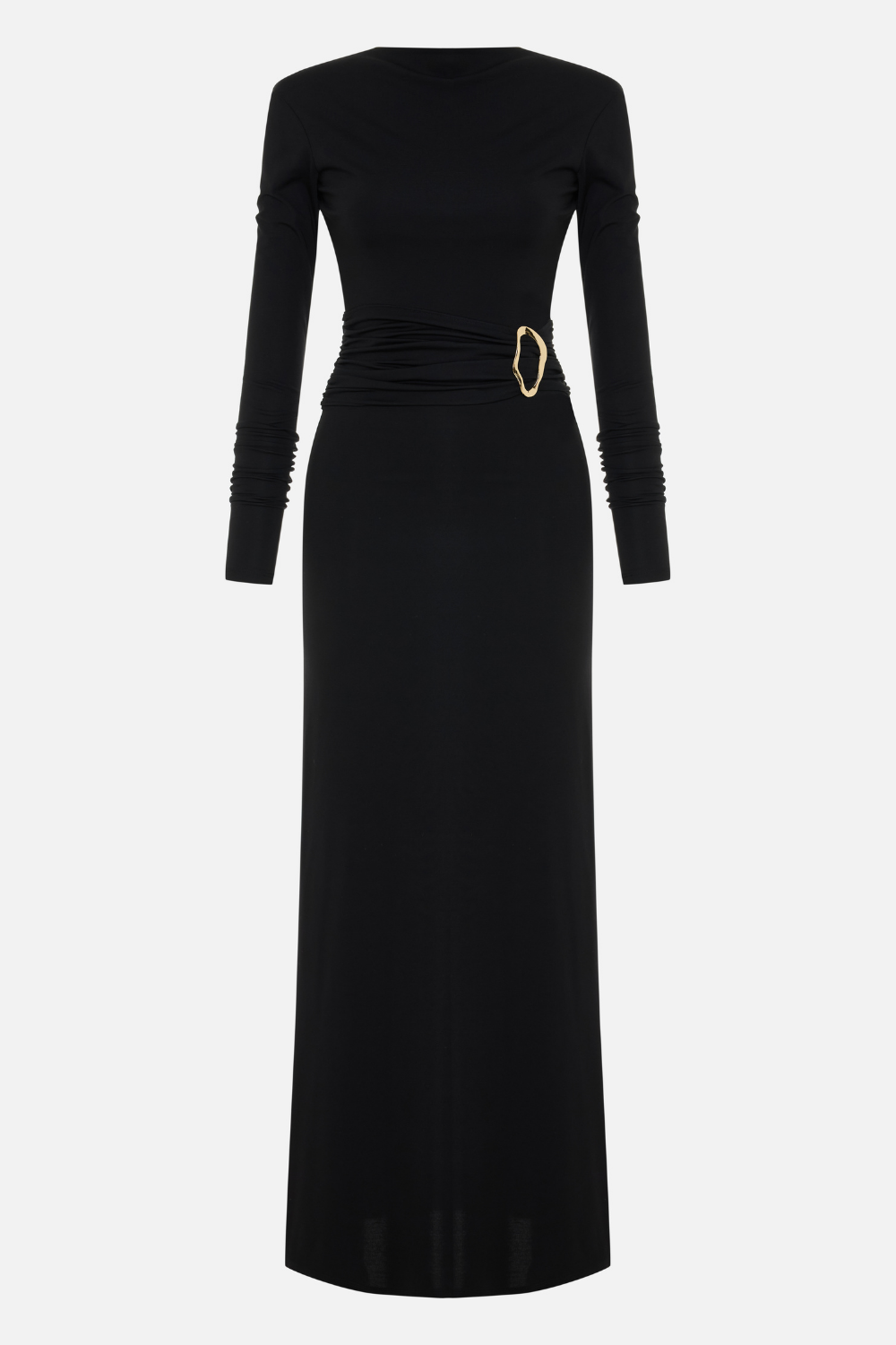 Uzun Kollu Altın Tokalı Elbise