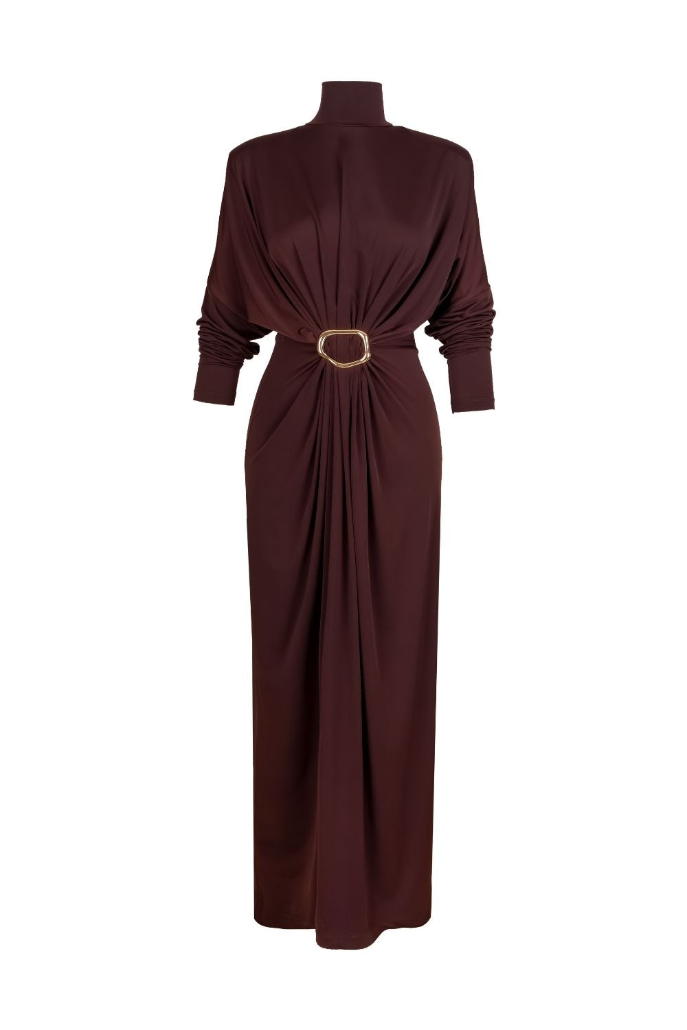 Zarif ve modern detaylarıyla öne çıkan tokalı uzun elbise, hem şıklığı hem de rahatlığı bir arada sunar. Slim fit kesimi sayesinde vücut hatlarınıza kusursuz uyum sağlar ve feminen bir siluet oluşturur.