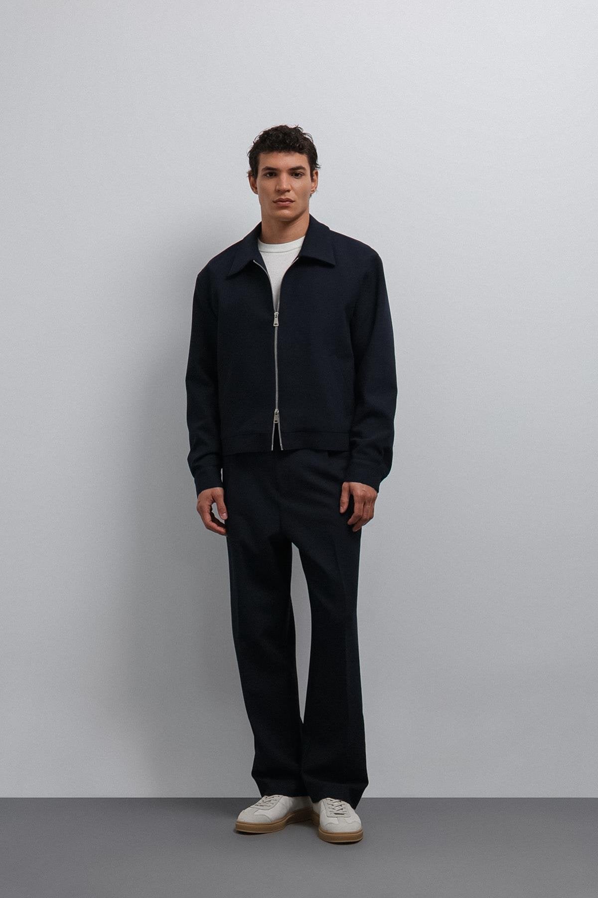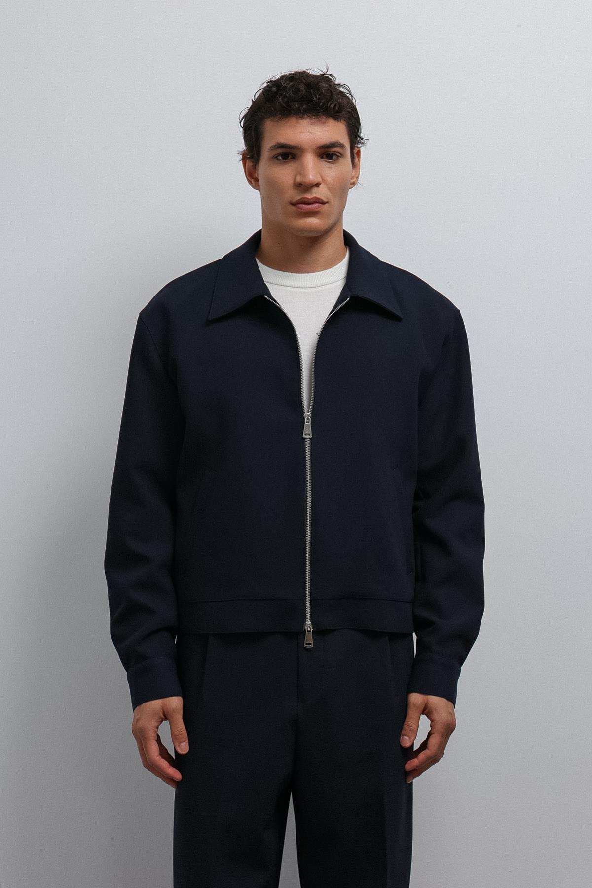 Lacivert Fermuarlı Mevsimlik Erkek Mont