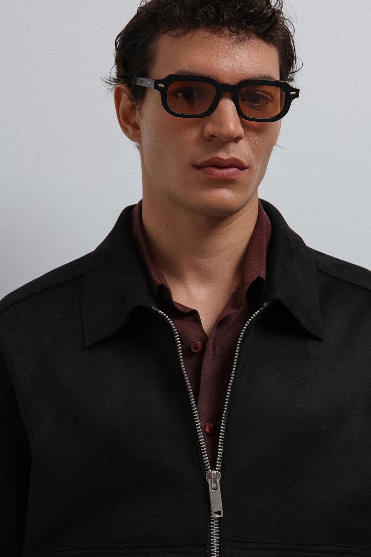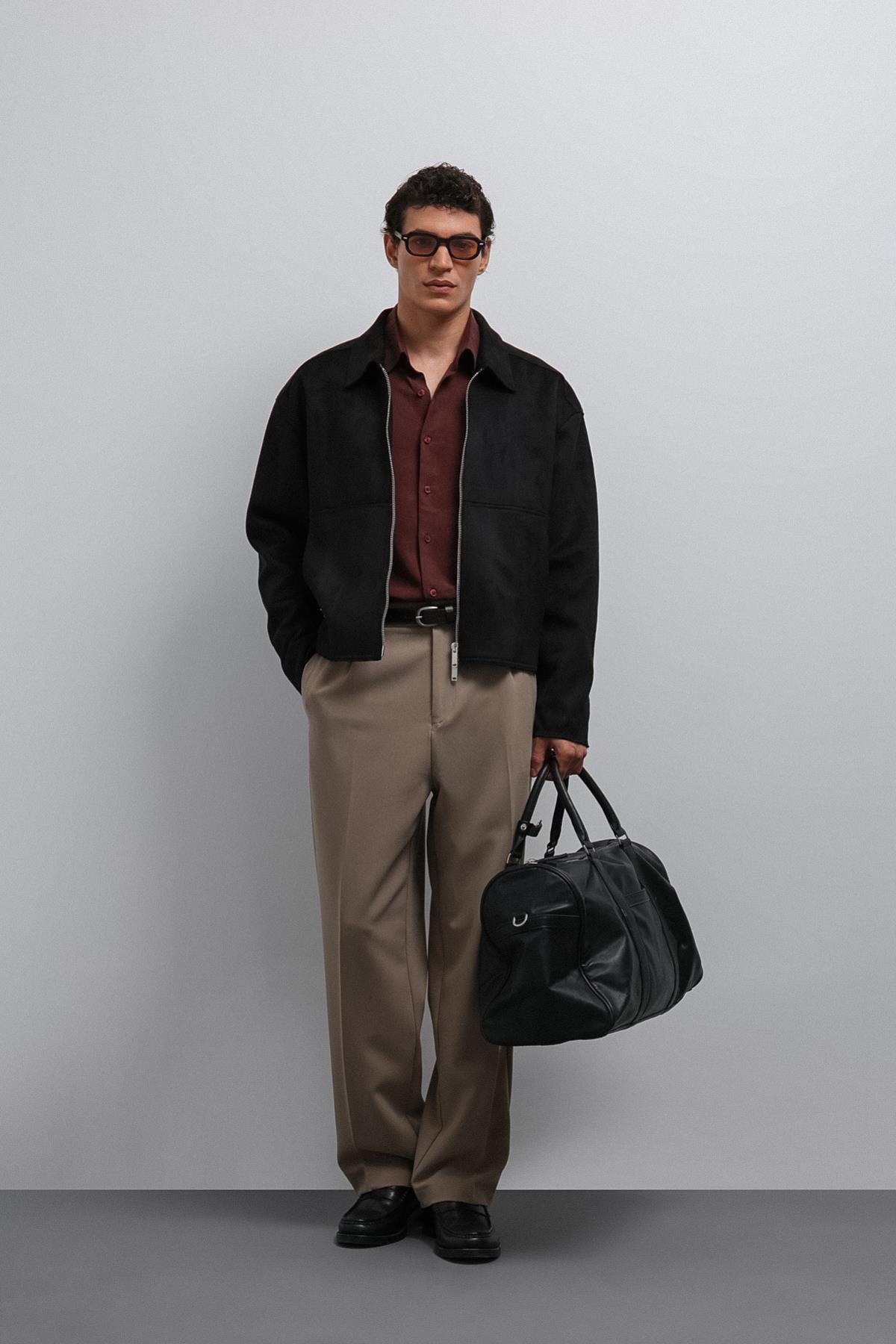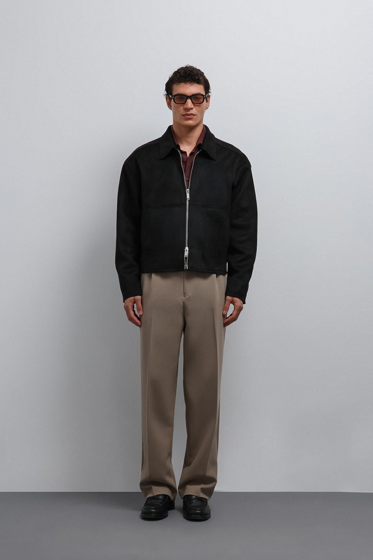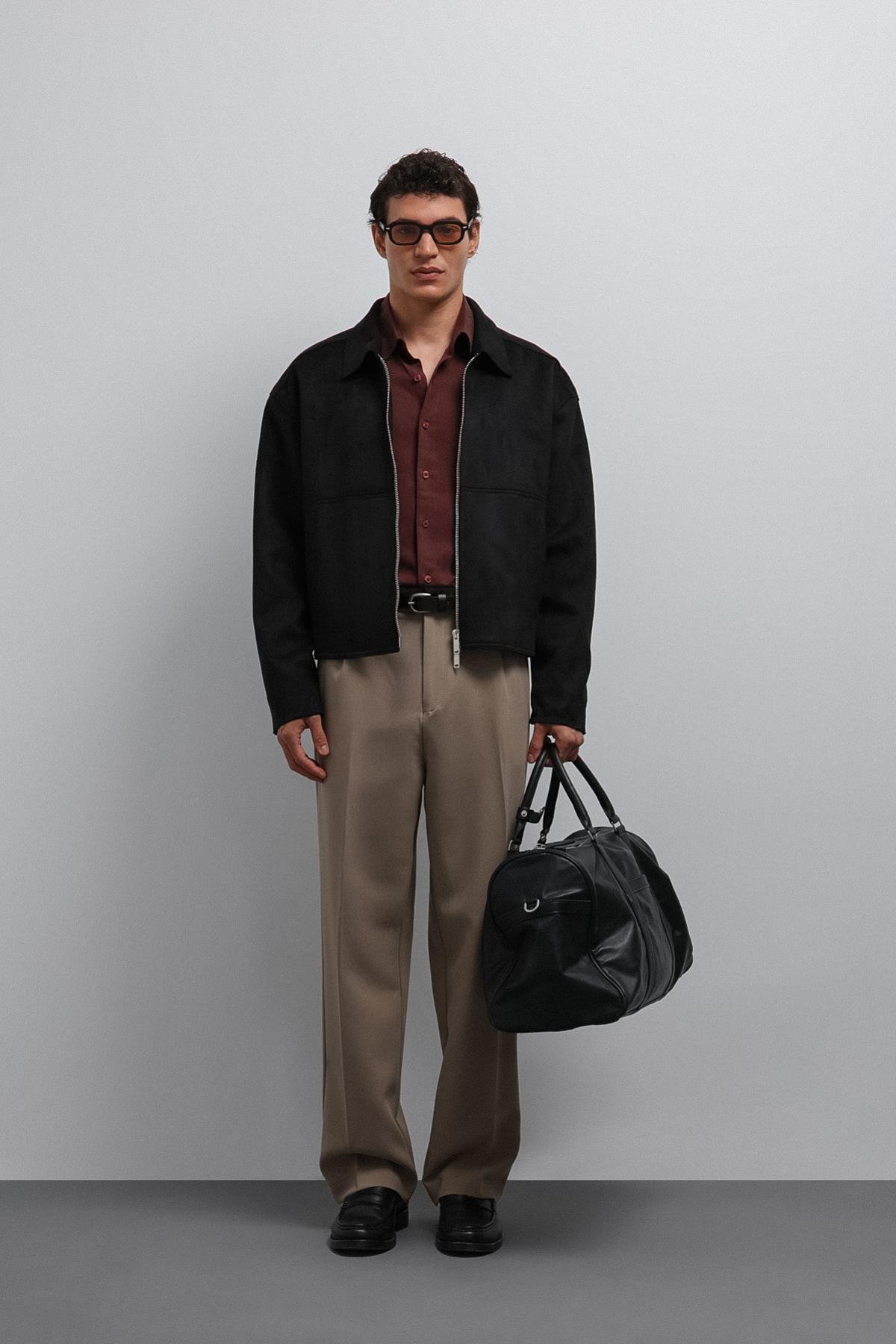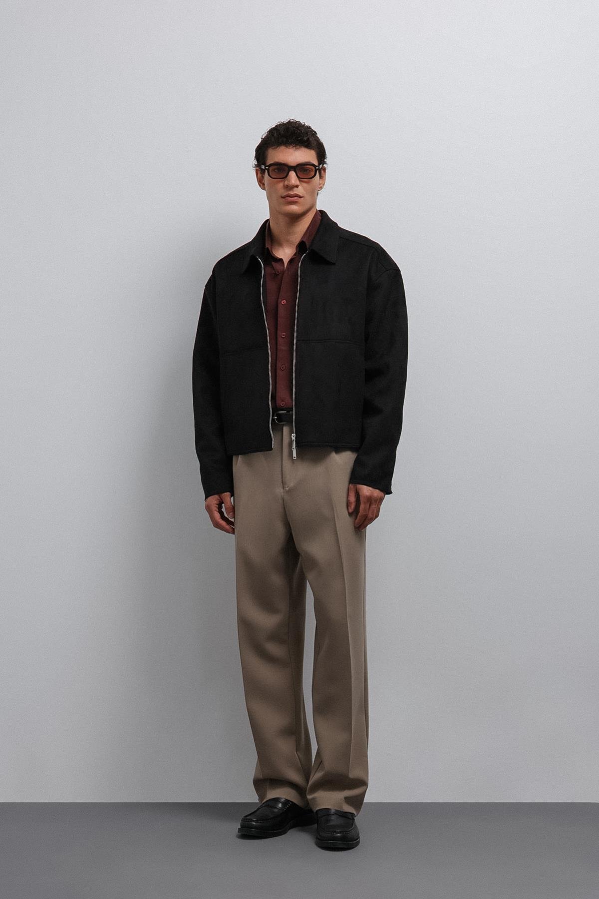 Siyah Fermuarlı Suni Süet Erkek Mont