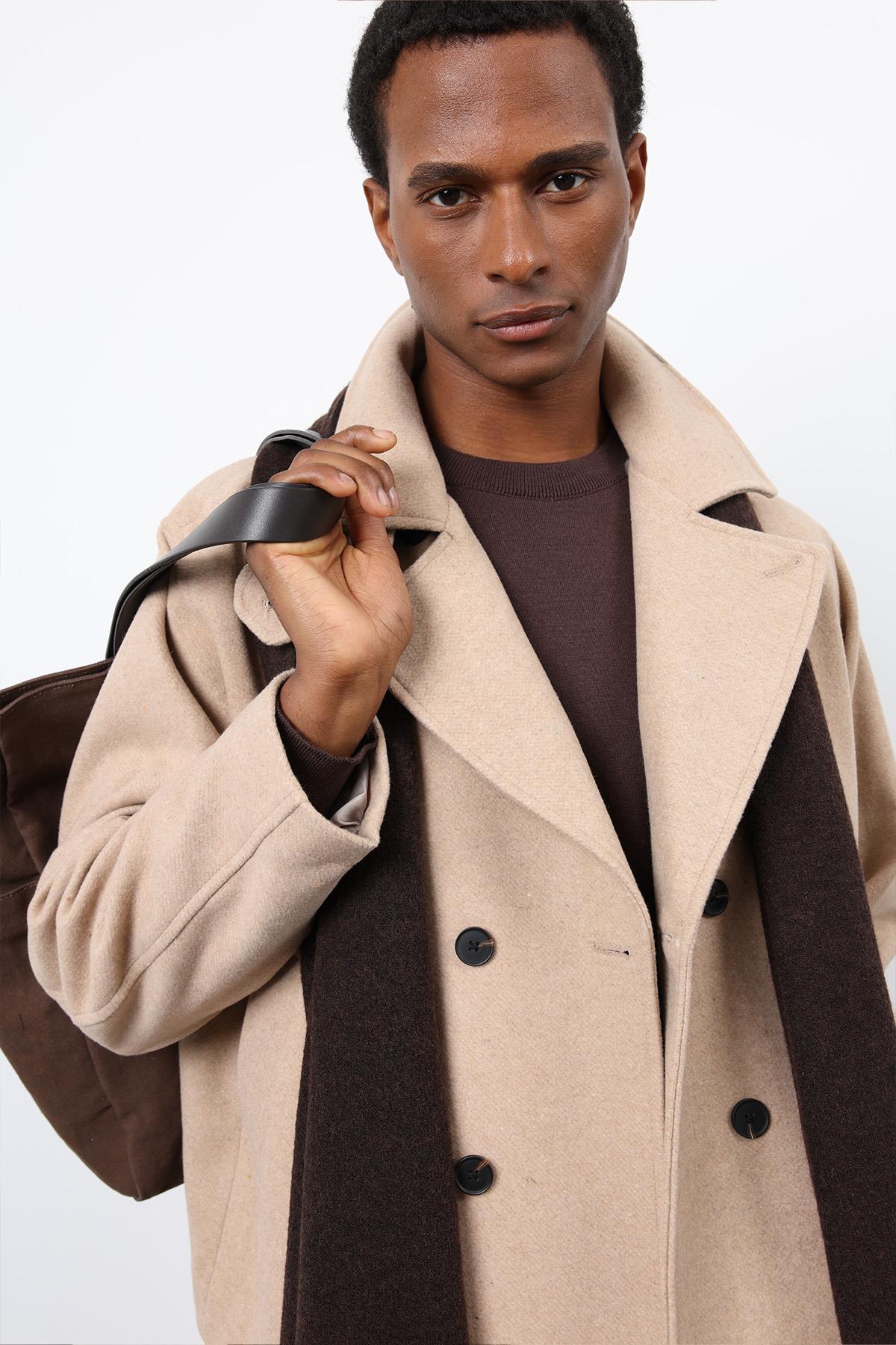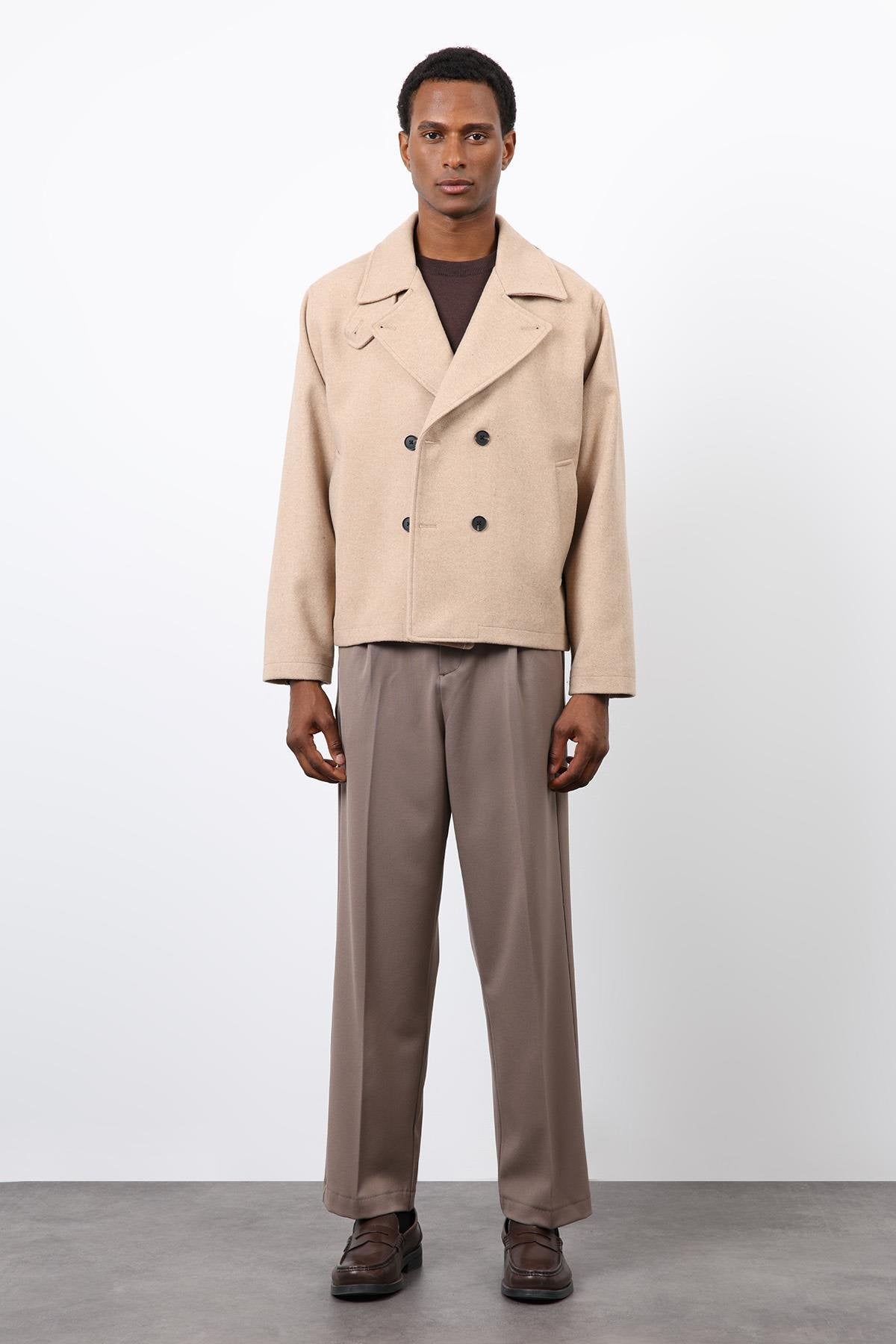 Bej Kruvaze Kapama Kısa Erkek Kaban
