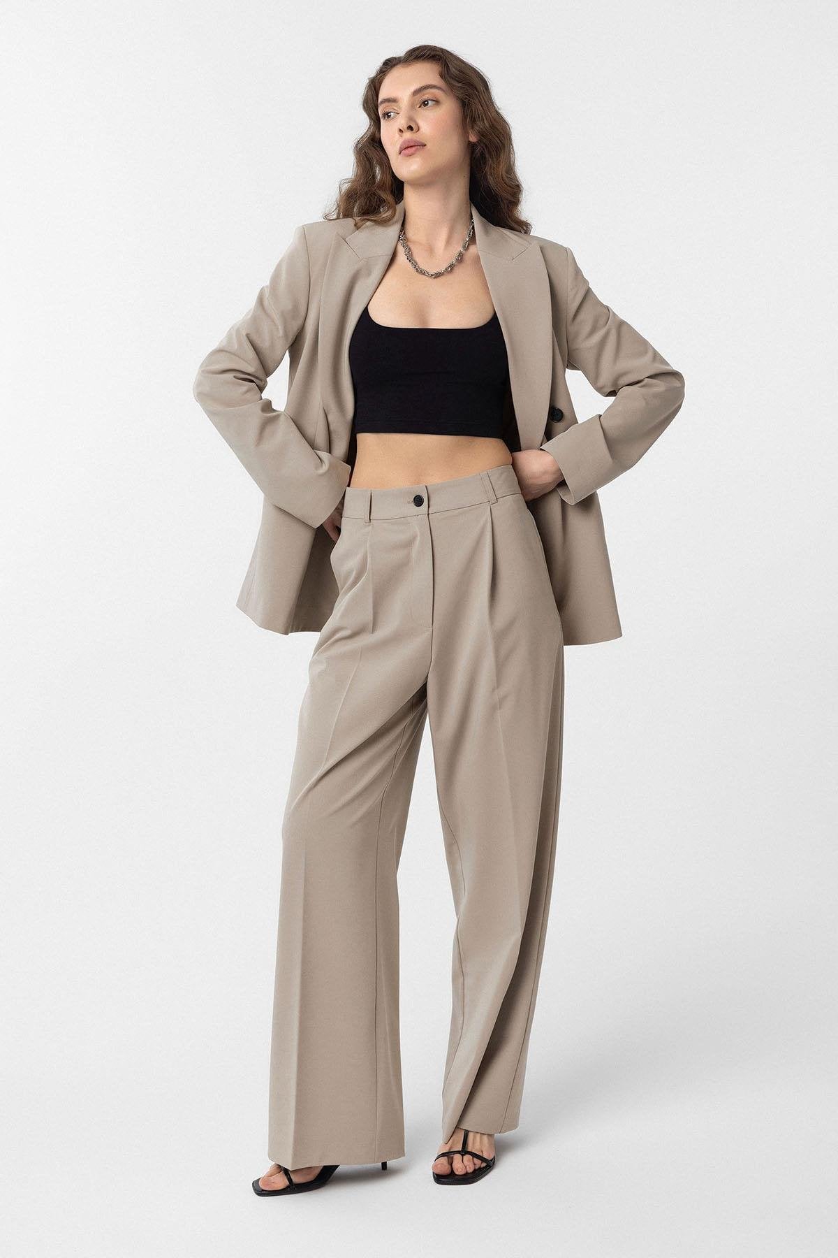 Bej Pilili Kadın Pantolon