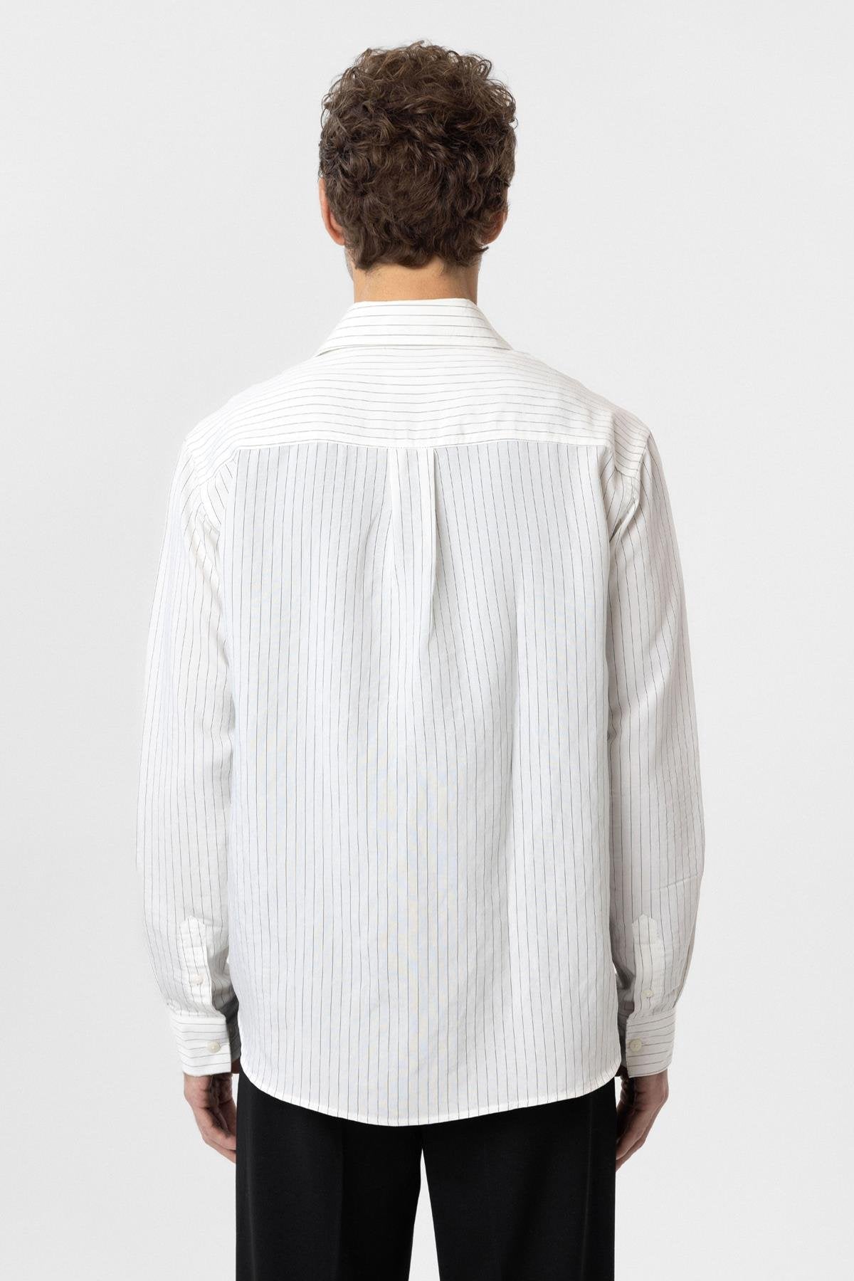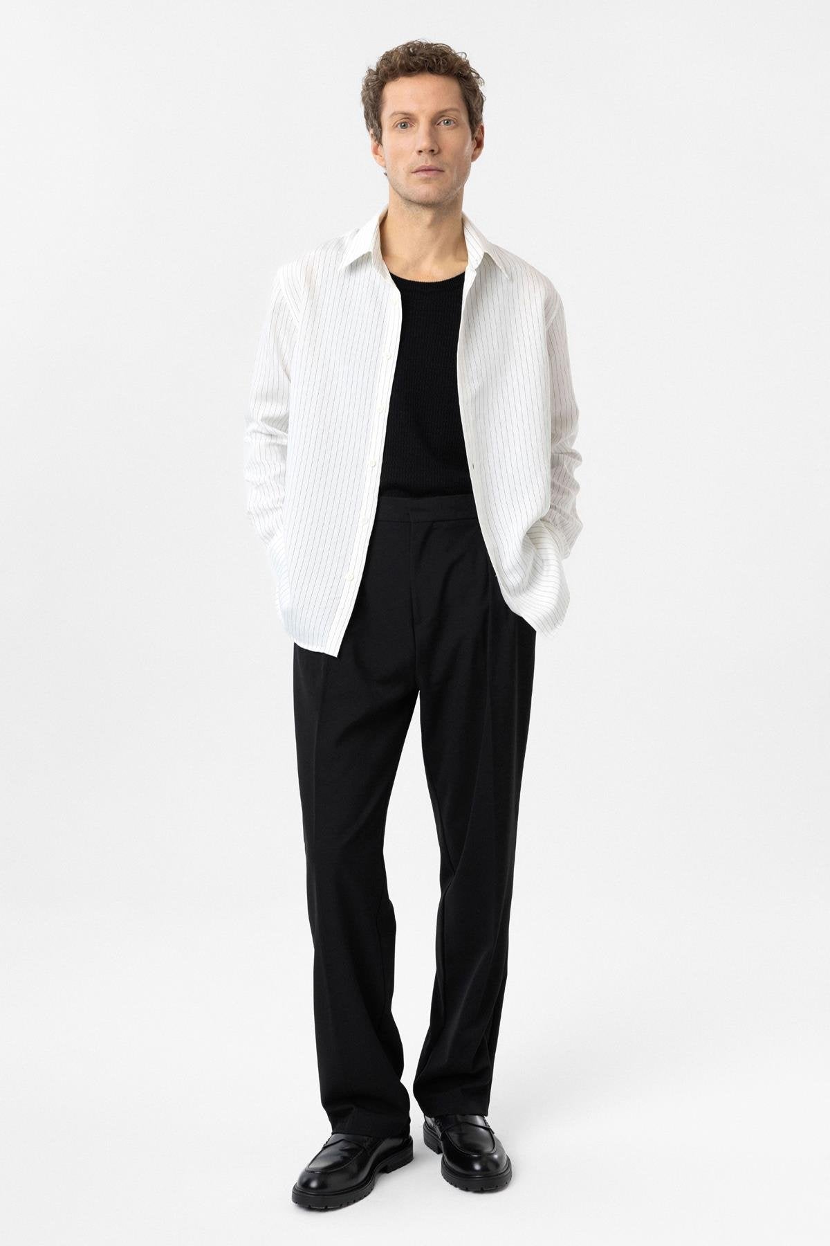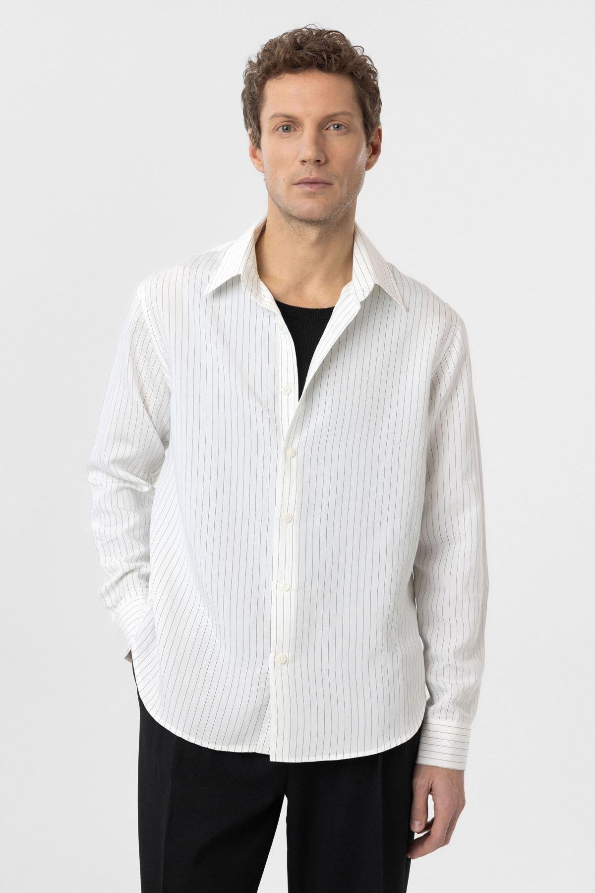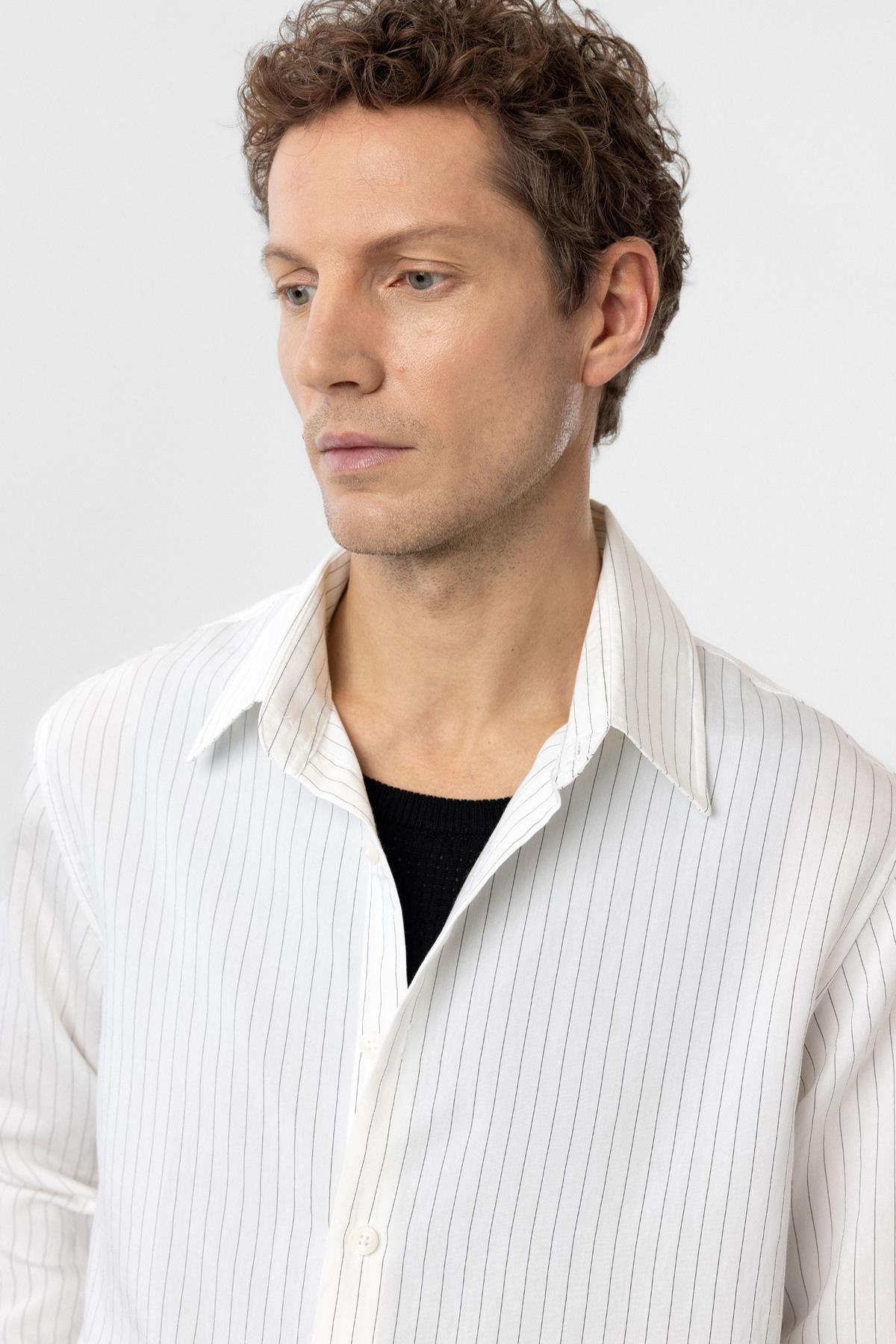 Beyaz Modal Kumaş Relax Fit Çizgili Erkek Gömlek