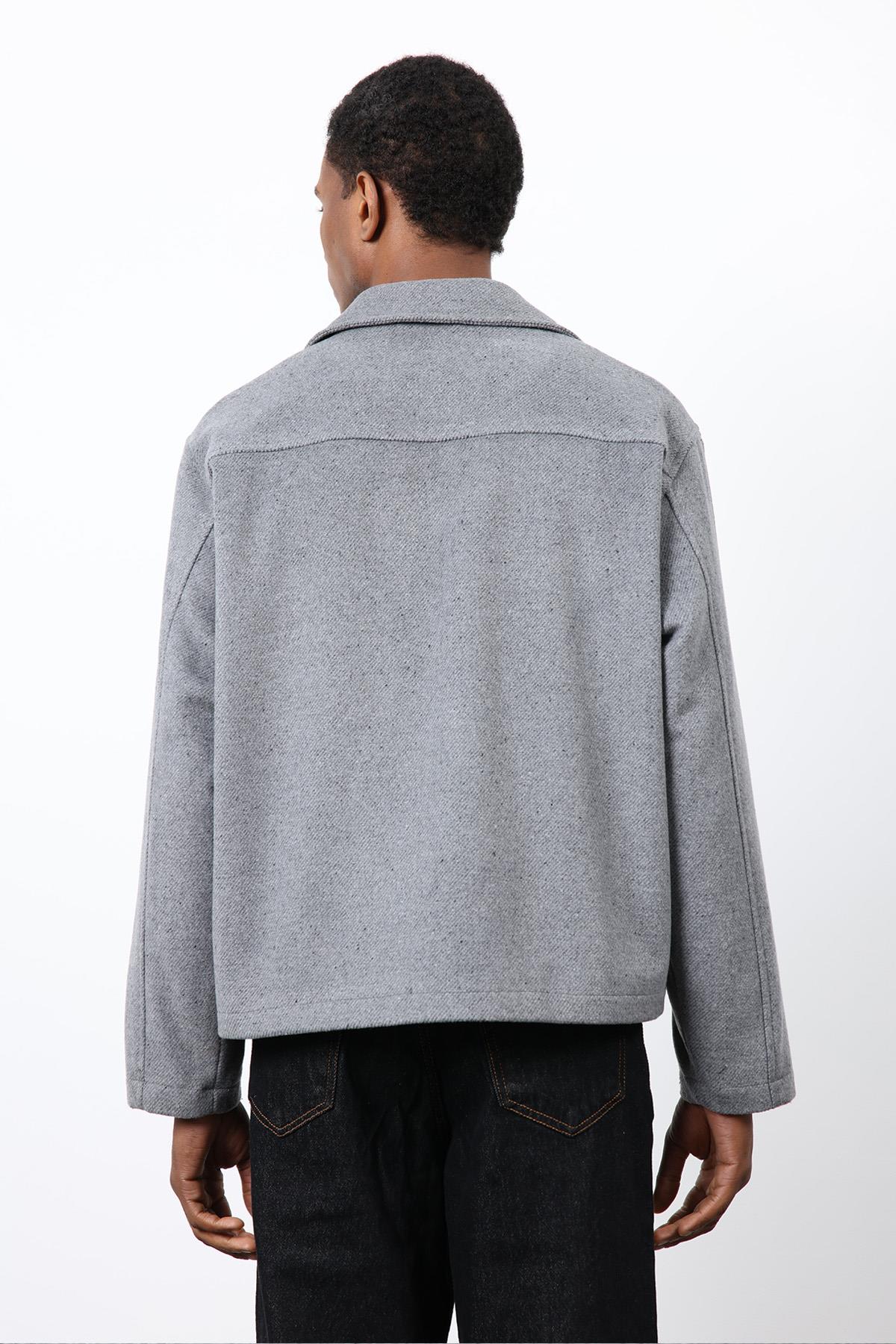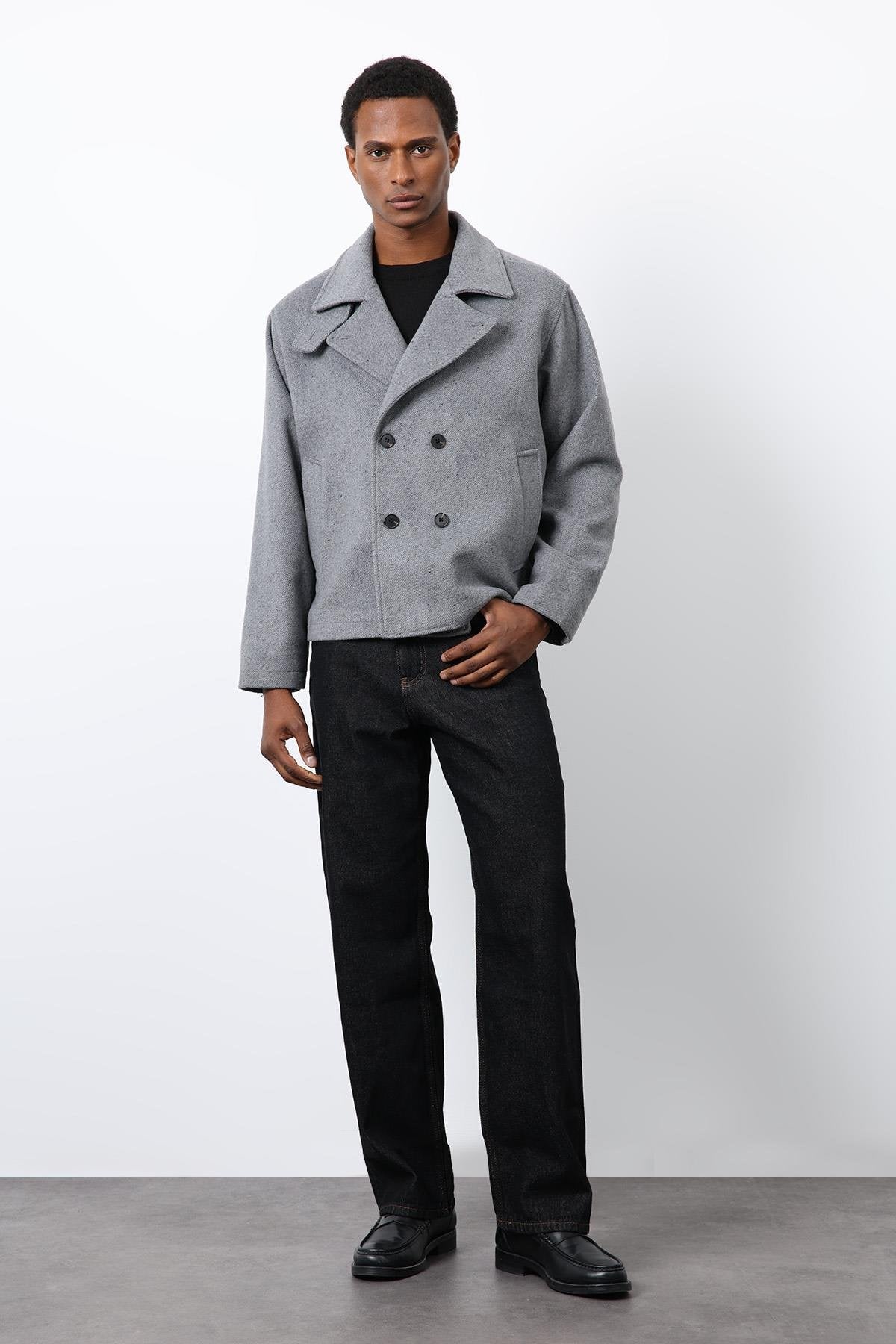 Gri Kruvaze Kapama Kısa Erkek Kaban