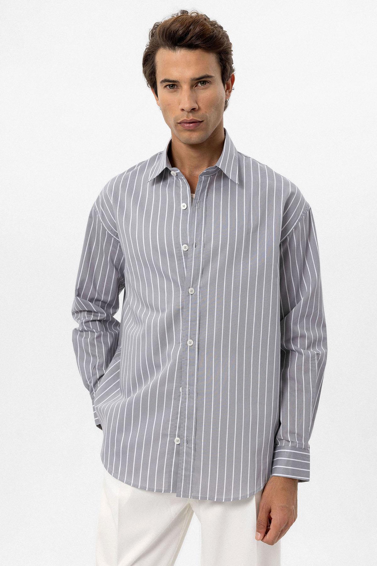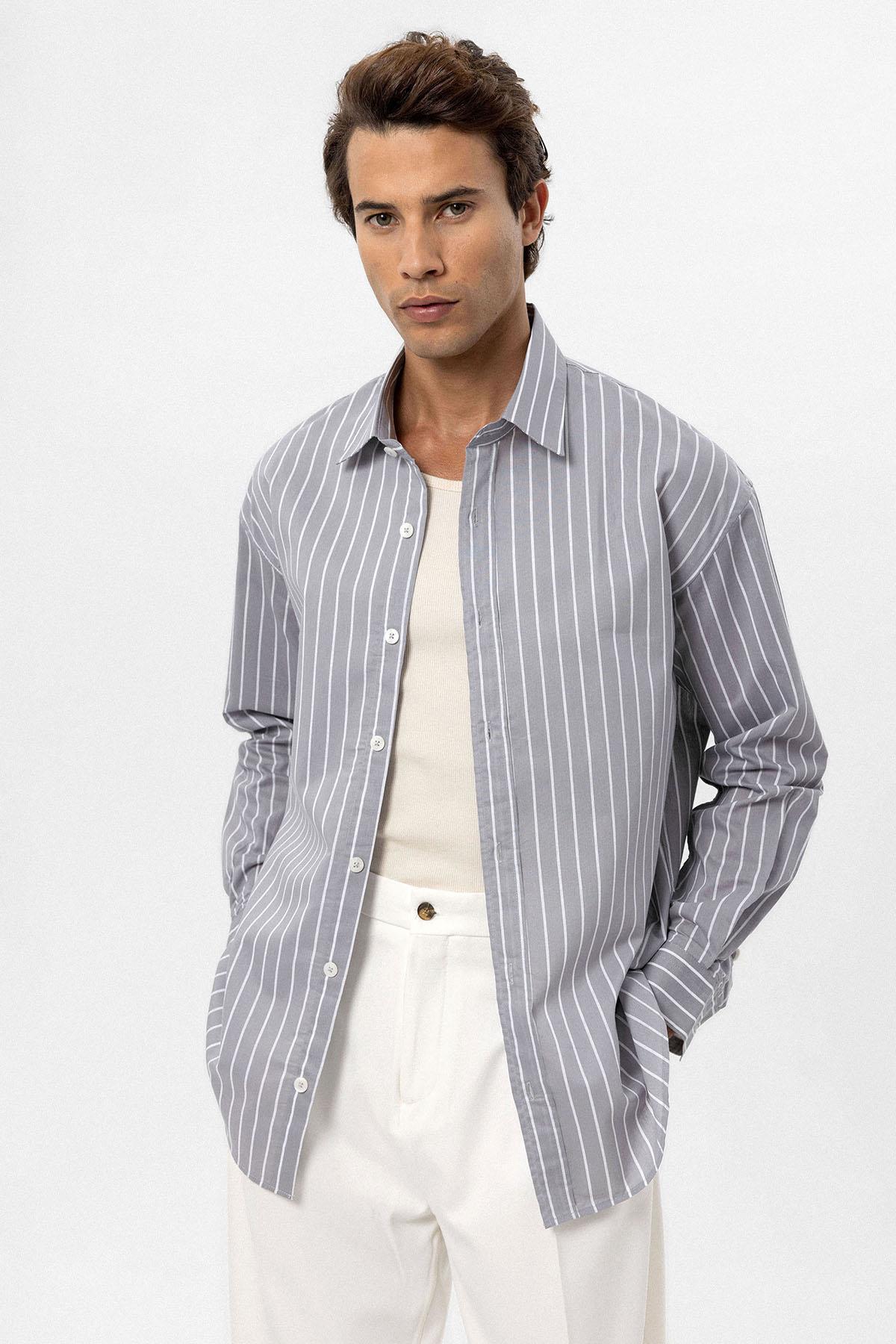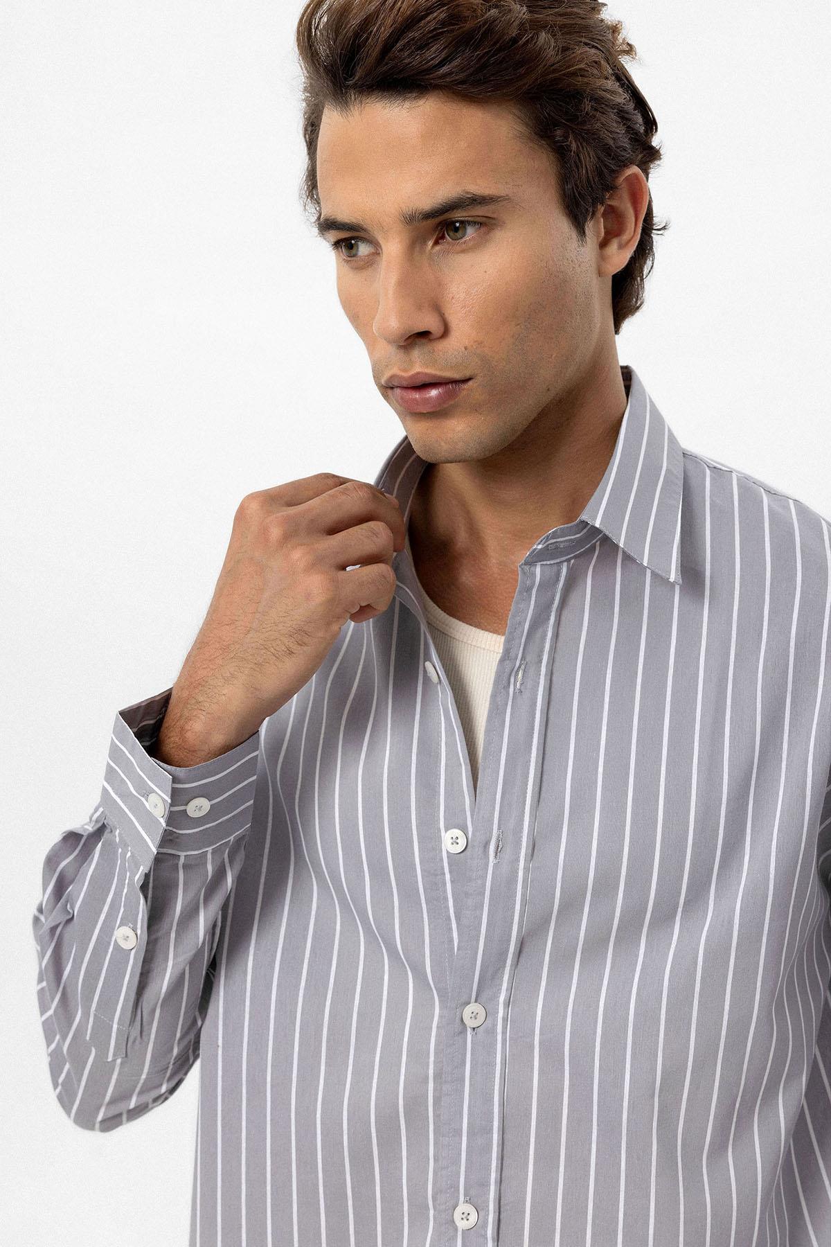 Gri hakimiyetinde özgün duruşuyla öne çıkan Antioch Uzun Kol Gömlekkarakteristik silüet yansıtan lüks tasarımıyla göz dolduruyor.Uzun Kol tasarım Tam Pat Düğmeli kapamasıyla tamamlanıyor. Lüks dokusu ve kalıbıyla son derece konforlu hissetmenizi sağlayacak tasarım günlük şehir stillerinizde ve ofis takımlamalarınızda kullanıma uyum sağlıyor. İsteğinize göre çeşitli pantolonlarınızla beraber kullanabileceğiniz tasarım şık ve iddialı görünüm kazanmanızı sağlıyor ve stilinizi bir adım öne taşıyor.